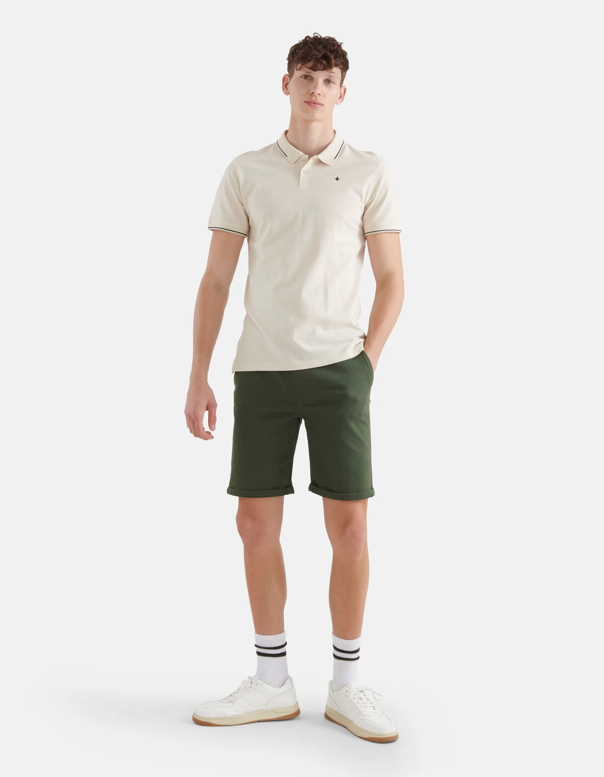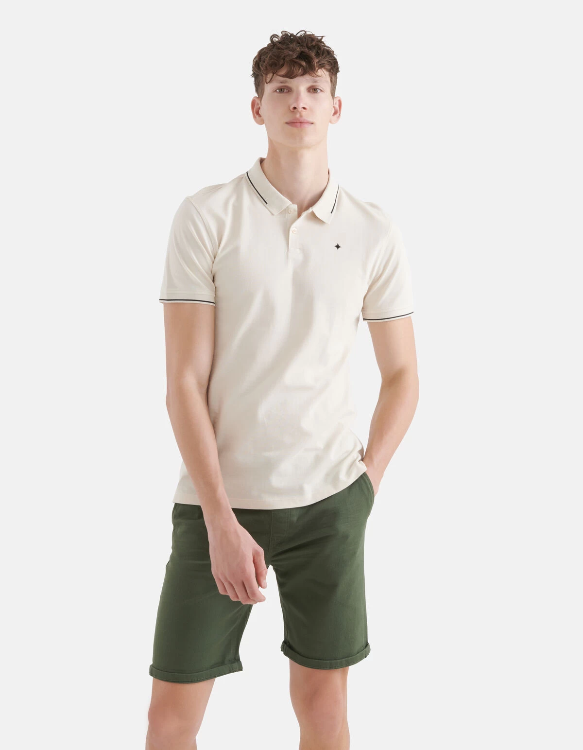 Iconic! De Basis Polo heeft een korte mouw, een kraag, een knoopsluiting en een regular fit. Het item wordt gekenmerkt door de gebroken witte kleur met een subtiel Shoeby sparkle logo op de voorzijde. Verder is de polo gemaakt van een pique gebreide stof, hierdoor krijg het een sportieve look. De polo is gemaakt van katoen en elastaan. Door deze samenstelling is het sterk van kwaliteit, draagt het comfortabel en rekt het deels mee. Maak de look compleet met een donkergroene short en sneakers voor een stijlvolle look! Het model heeft een lengte van 190 cm en draagt maat M. Het artikel heeft een totale lengte van 75 cm bij maat M.