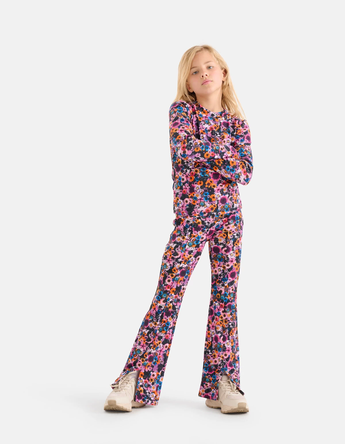 Our favorite of the season! De Bloemenprint Rib Flared Legging heeft een hoge taille, een flared fit en een elastieke tailleband. Het item wordt gekenmerkt door de rib stof, de paarse kleur met een all-over kleurrijke bloemenprint. Door de zachte stretch stof is de legging super comfortabel. Maak je look compleet met de bijpassende top en een teddy gilet voor een stijlvolle look!
