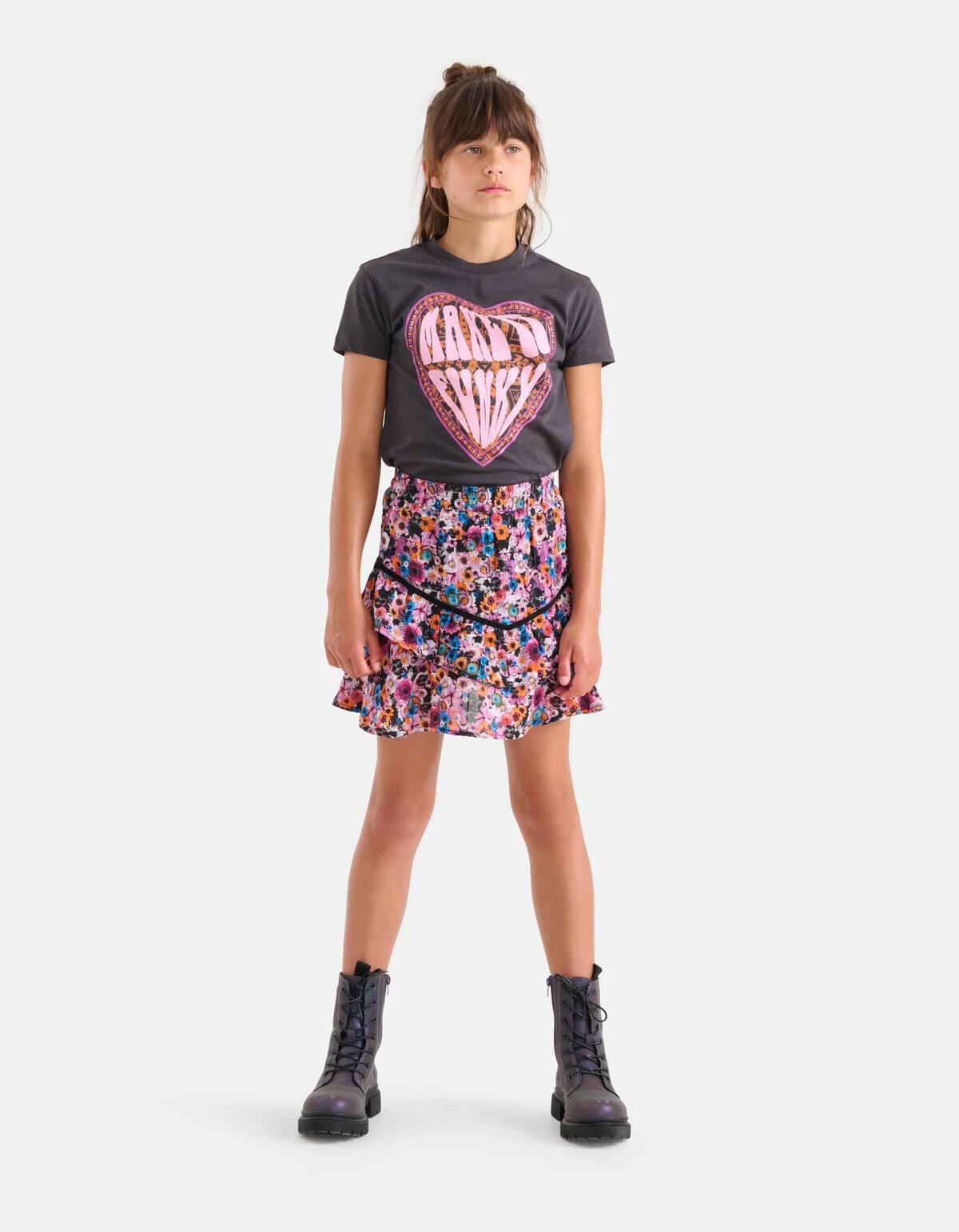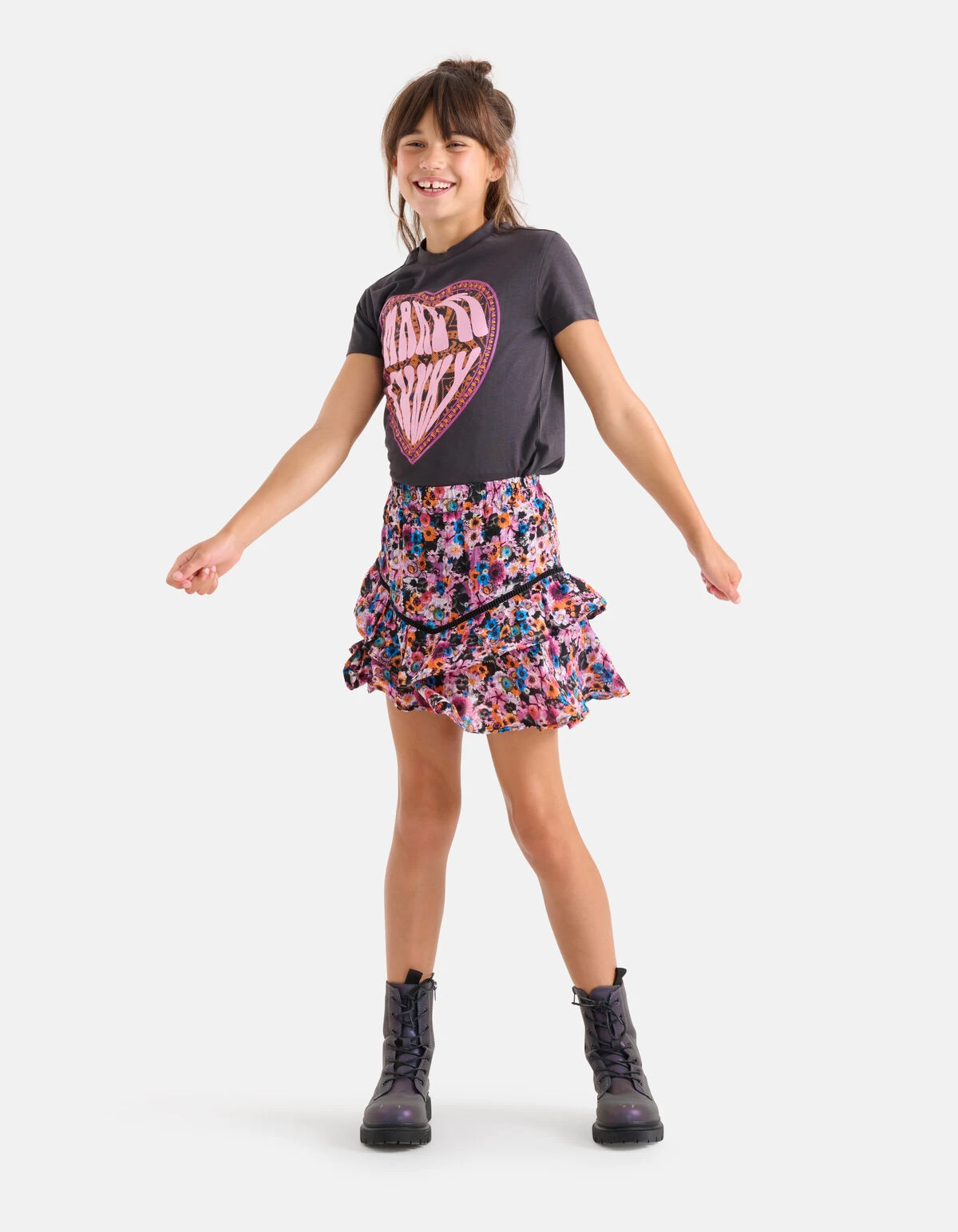 Make a statement! De Bloemenprint Rok heeft een hoge taille en een uitlopend model. Het item wordt gekenmerkt door de paarse kleur met een all-over kleurrijke bloemenprint. Verder heeft het rokje een shortje aan de binnenzijde. Een leuk detail is de tape lining en de ruffles aan de onderzijde. Combineer het samen met een statement t-shirt of een chunky trui voor een stijlvolle look!