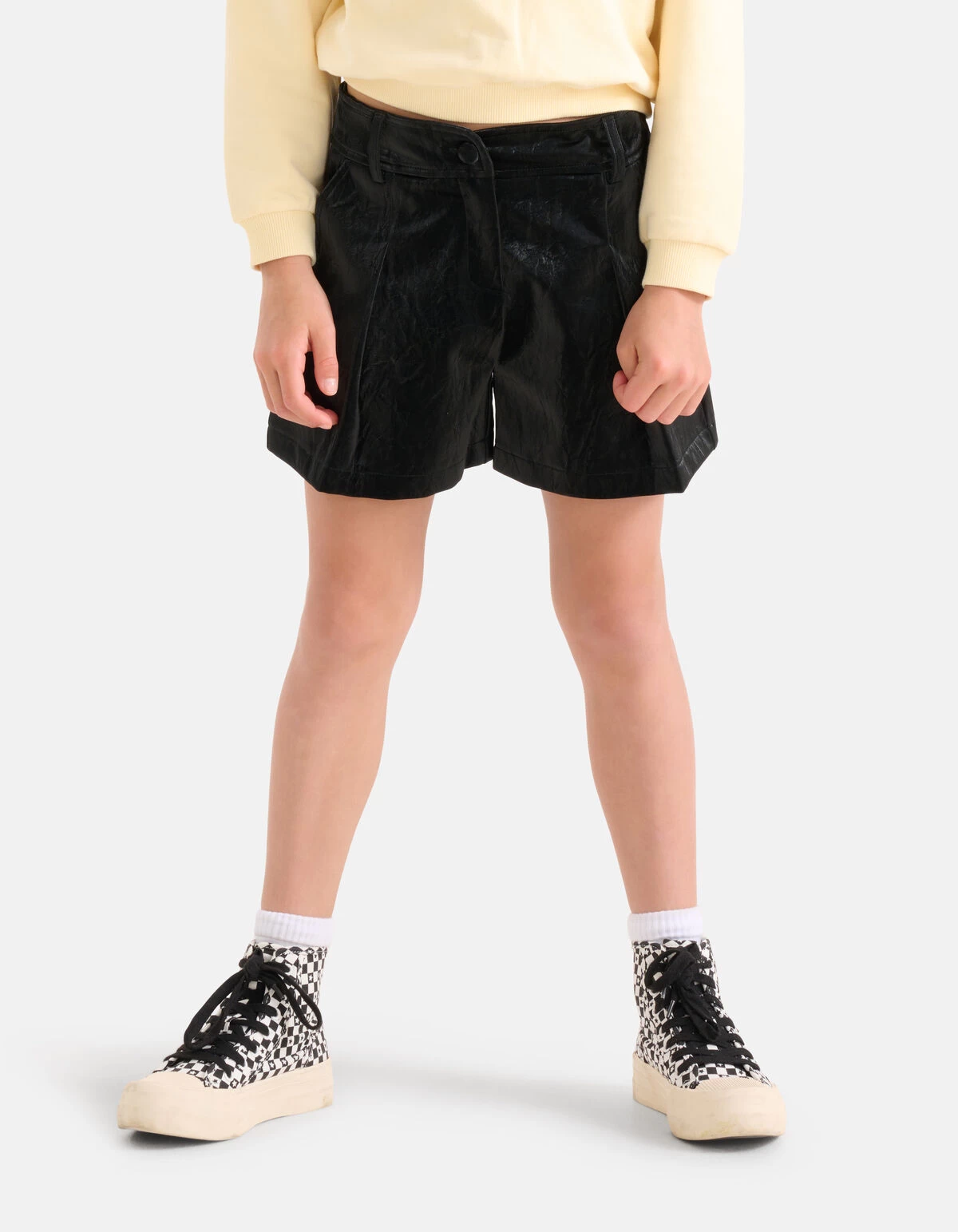 Introducing statement styles! De Coated Short heeft een hoge taille, een relaxed fit, een korte broekspijp, non-stretch, insteekzakken, paspelzakken en een knoop-en ritssluiting. Het item wordt gekenmerkt door de zwarte kleur met een coating eroverheen, hierdoor krijgt het shiny effect. Het is gemaakt van viscose, hierdoor is het kleurvast en draagt het comfortabel. Maak de look compleet met een lichtgele sweater en een paar sneakers voor een stijlvolle look!