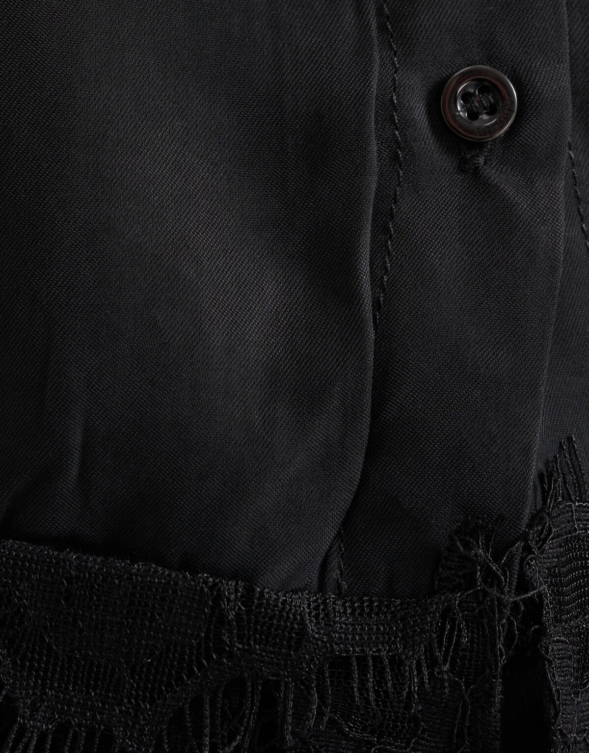 Inviting you to mix and match with ease! De Cupro Cropped Blouse heeft lange mouwen, een kraag, een knoopsluiting, een cropped model en een regular fit. Het item wordt gekenmerkt door de zwarte kleur met een kanten rand aan de onderzijde. Verder heeft de blouse een milde glans die het gevoel van zijde geeft. Het artikel is gemaakt van viscose en cupro, hierdoor is het kleurvast, absorberend en comfortabel. Combineer het samen met het bijpassende shortje en een paar sandalen voor een zomerse look! Nothing but good vibes. Het model heeft een lengte van 177 cm en draagt maat S. Het artikel heeft een totale lengte van 61,5 cm bij maat S.