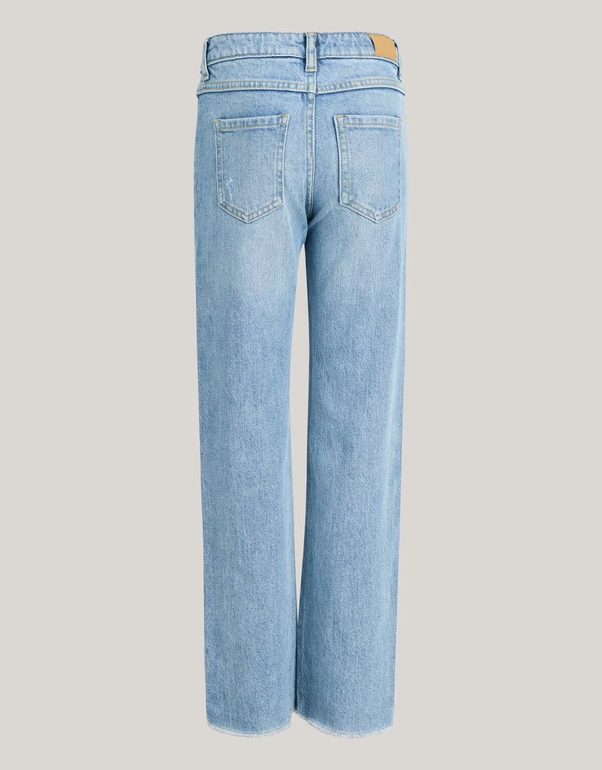 When in doubt, wear denim! De Destroyed Straight Leg Jeans heeft een hoge taille, een 5-pocket model, een straight fit, een verstelbare tailleband en een knoop-en ritssluiting. Het item wordt gekenmerkt door de bleached blauwe denimkleur met destroyed details aan de voorzijde. Verder heeft de jeans gele stiksels voor de perfect finishing touch! Een leuk detail zijn de rafels aan de onderzijde van de broek, hierdoor krijg je een stoerder effect. Het is gemaakt van katoen en elastaan, waardoor het sterk van kwaliteit is, comfortabel draagt en subtiel rekbaar is. Door het wassing proces is ieder item uniek en kan de kleur dus soms variëren. Maak de look compleet met een artwork t-shirt en een paar laarzen voor een stoere look!