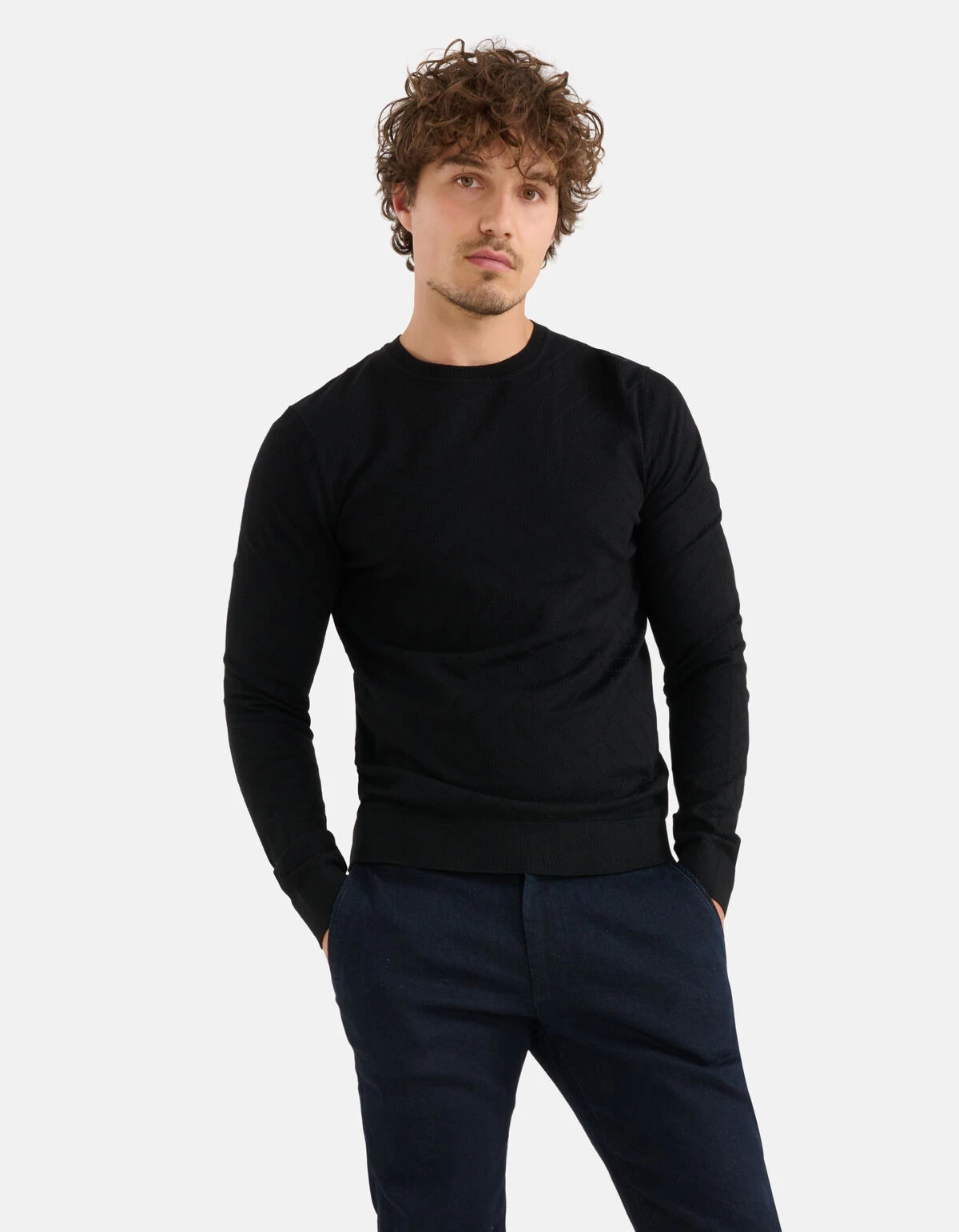 Embrace the timeless allure of black with Shoeby! De Diagonaal Trui heeft lange mouwen, een hoge ronde hals, een fijne gebreide kwaliteit, een stretch stof en een regular fit. Het item wordt gekenmerkt door de zwarte kleur met een all-over geweven patroon in de stof verwerkt. Het patroon heeft diagonale lijnen, waardoor het een uniek effect geeft. Het is gemaakt van viscose en polyamide, hierdoor is het sterk van kwaliteit, vormvast en kleurvast. Maak de look compleet met een jeans en je bent ready to go! Het model heeft een lengte van 184 cm en draagt maat M. Het artikel heeft een totale lengte van 70 cm bij maat M.