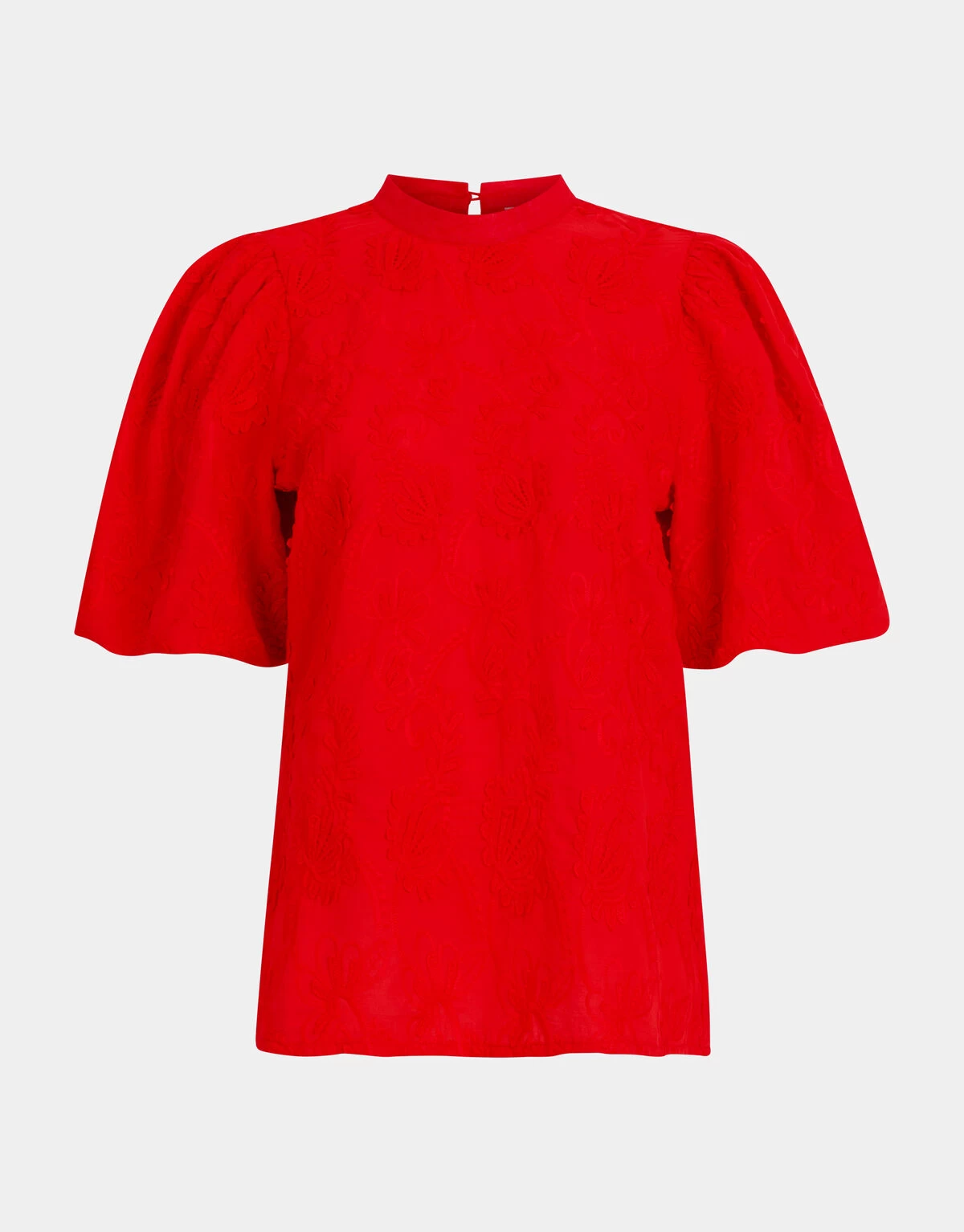 Get ready to make a statement that leaves a lasting impression! De Embroidery Top heeft een korte pofmouw, een hoge ronde hals, een non-stretch stof, een licht transparante stof, een knoopsluiting op de achterzijde en een regular fit. Het item wordt gekenmerkt door de trendy rode kleur met een all-over geborduurde print. De print heeft een 3D effect, waardoor het een uniek effect heeft. Een fijn detail is de elastieke band bij de onderzijde van de mouwen. Het is gemaakt van 100% katoen, hierdoor is het sterk van kwaliteit en draagt het comfortabel. Maak de outfit compleet met een cargo denim en je bent good to go! Het model heeft een lengte van 176 cm en draagt maat S. Het artikel heeft een totale lengte van 63 cm bij maat S.