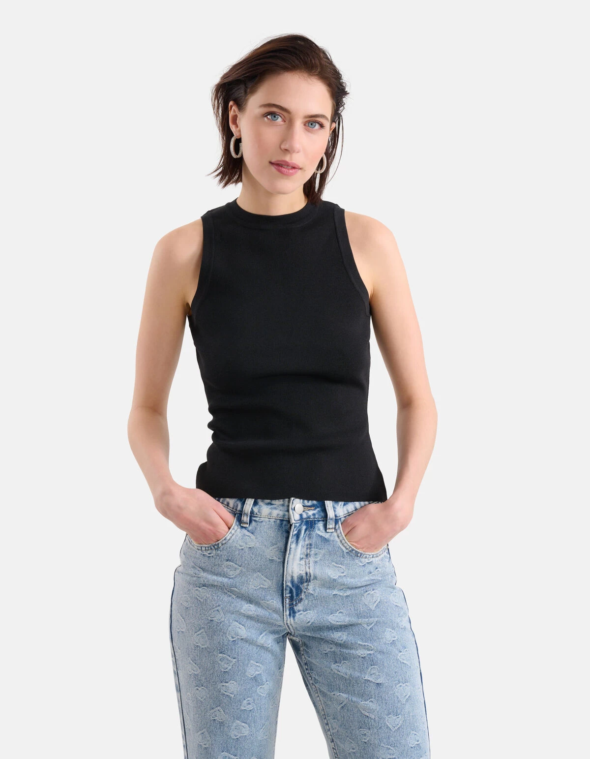 Perfect in black! De Halter Top heeft een hoge hals, een aangesloten fit en is mouwloos. Het item wordt gekenmerkt door een kort vallend model, de zwarte kleur en een elastische stof. Een fijn detail aan de top is de fit, hierdoor zie je geen bh bandjes verschijnen. De top is gemaakt van viscose en polyamide, hierdoor is het kleurvast, vormvast, zacht van stof en sterk van kwaliteit. Maak de look compleet met een barrel leg jeans en een paar sandalen en je bent ready to go! Het model heeft een lengte van 172 cm en draagt maat S. Het artikel heeft een totale lengte van 49 cm bij maat S.