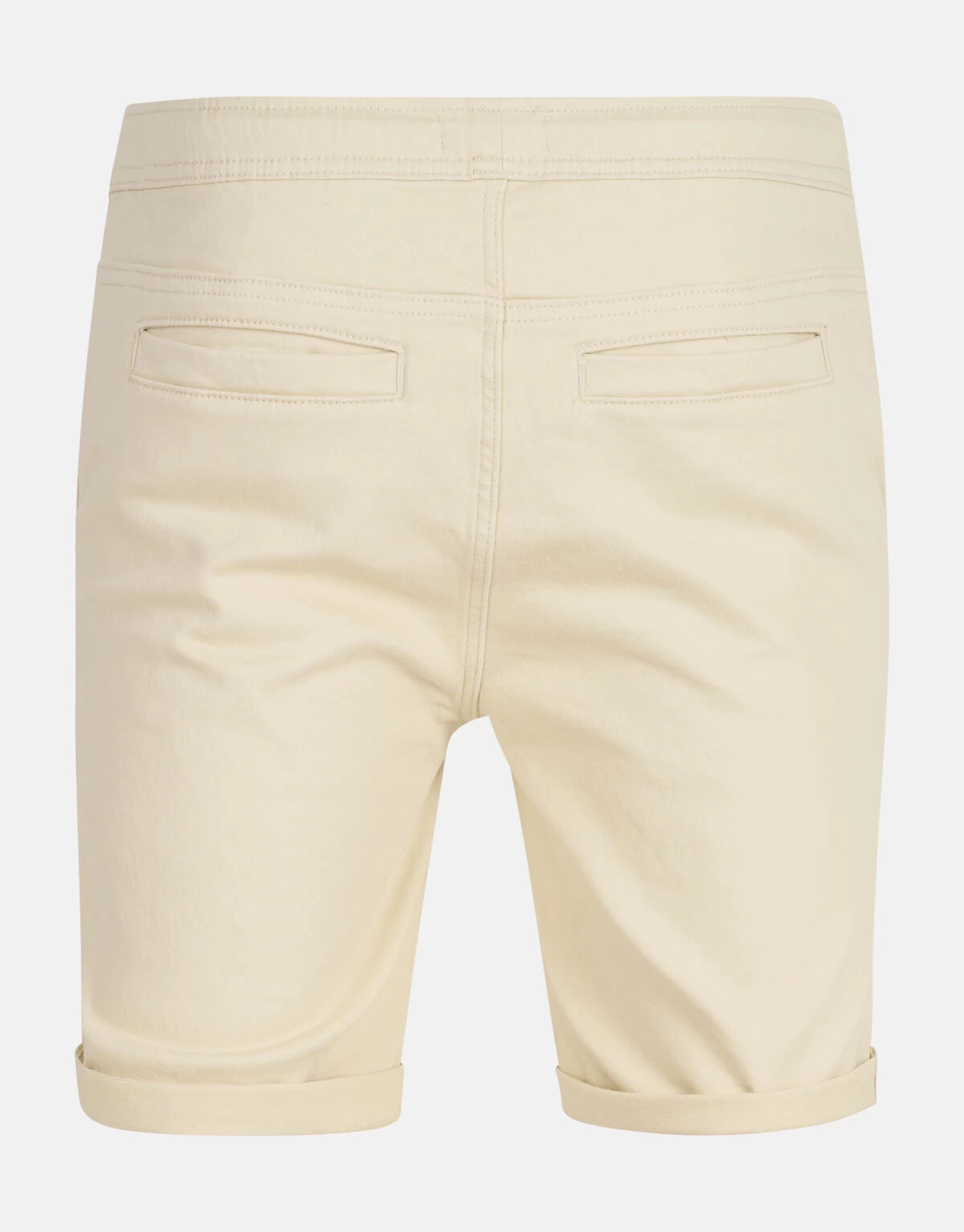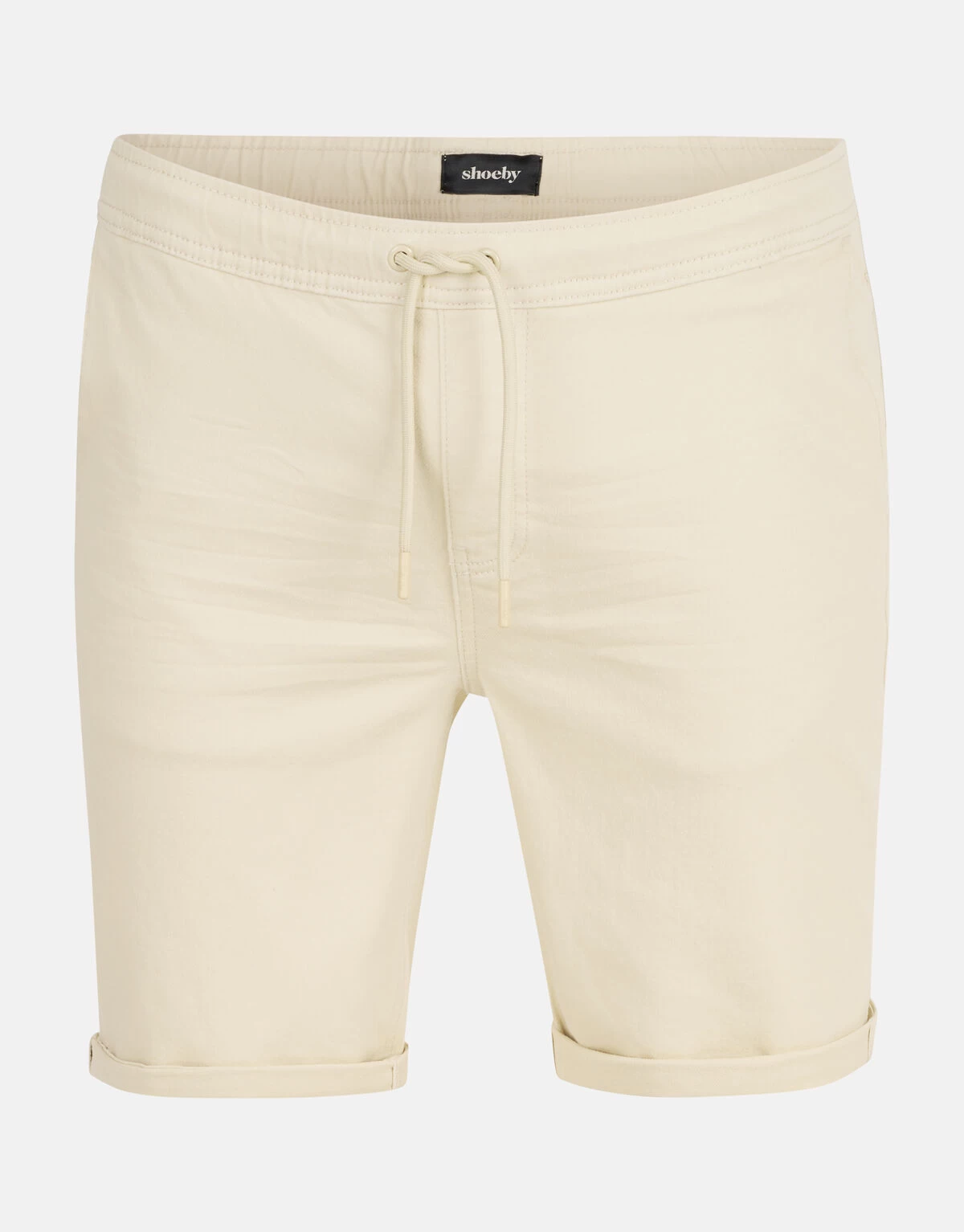 Casual meets stylish! De Jog Denim Short heeft een middelhoge taille, een korte broekspijp, een regular fit, een 4-pocket model en een elastieke band met een aansnoerkoord. Het item wordt gekenmerkt door de denim stof in een beige zandkleur. Het is gemaakt van katoen en elastaan. Door deze samenstelling is het sterk van kwaliteit, draagt het comfortabel en rekt het subtiel mee. Combineer het samen met een groen t-shirt voor een casual look! Het model heeft een lengte van 190 cm en draagt maat M. Het artikel heeft een binnenbeenlengte van 20,5 cm met omgeslagen broekspijpen bij maat M.