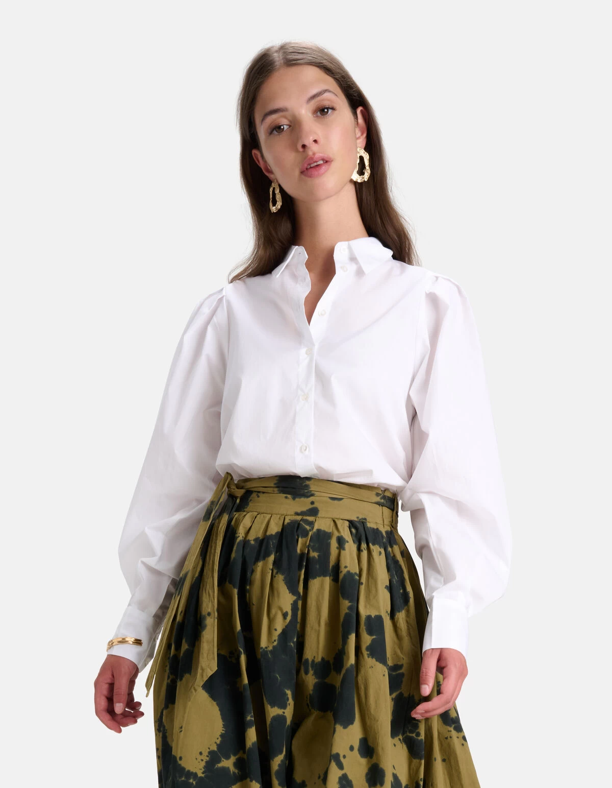 Always a classic! De Classic Poplin Blouse heeft lange mouwen, een relaxed fit, een kraag en een knoopsluiting. Het item wordt gekenmerkt door een witte kleur met volumineuze mouwen. De blouse is gemaakt van 100% katoen, waardoor de blouse stevig van stof is en ademt. Combineer het samen met onze Tie Dye rok voor een stijlvolle look. Het model heeft een lengte van 179 cm en draagt maat S. Het artikel heeft een totale lengte van 77 cm bij maat S.