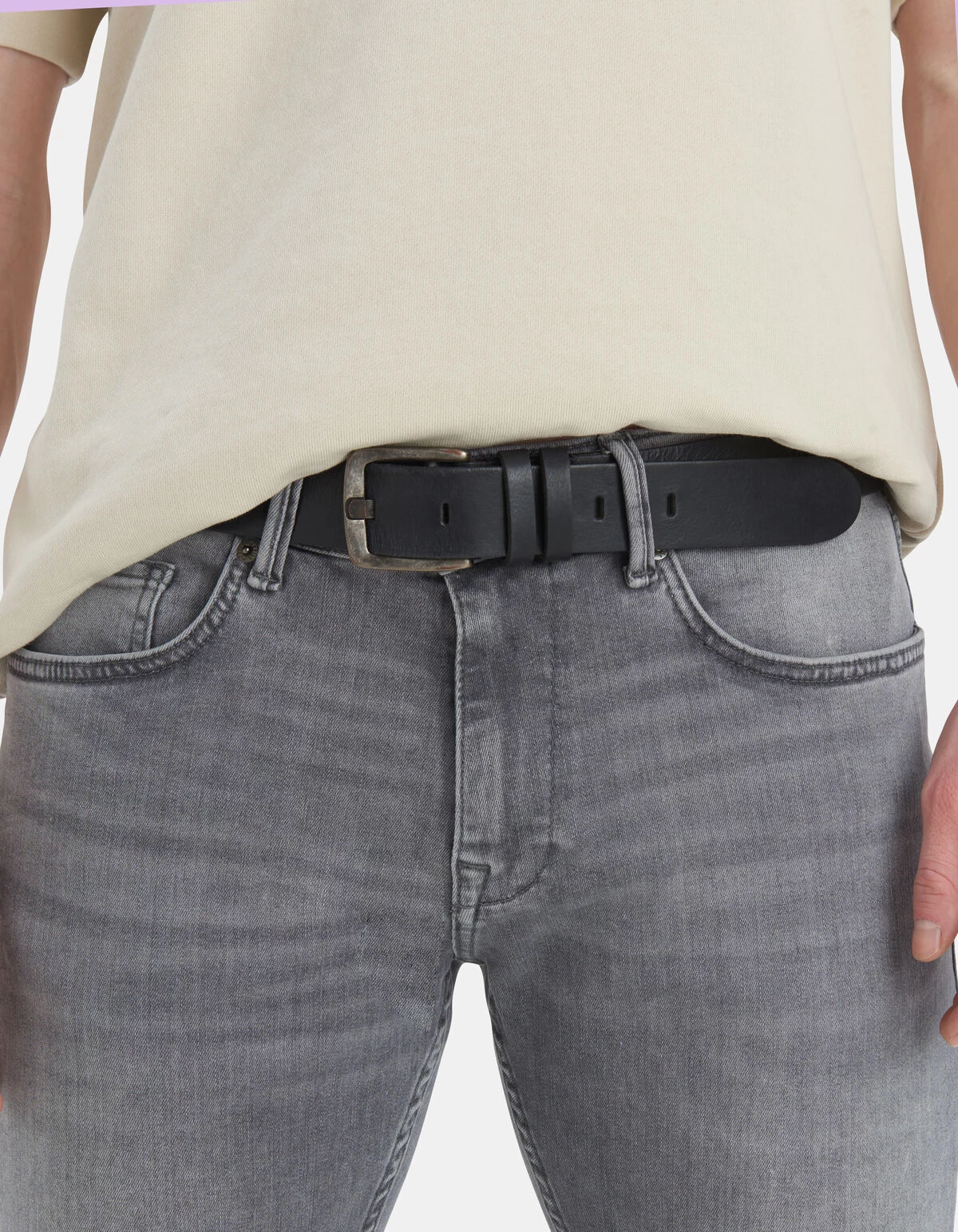 Belt it up! Deze leren riem is de perfecte toevoeging op jouw look. Door de zwarte kleur is de riem eenvoudig te combineren met iedere outfit. De gesp is strak vormgegeven en is gemaakt van metaal. Door het echte leer heeft iedere riem een unieke uitstraling. De riem is 3,5 cm breed.