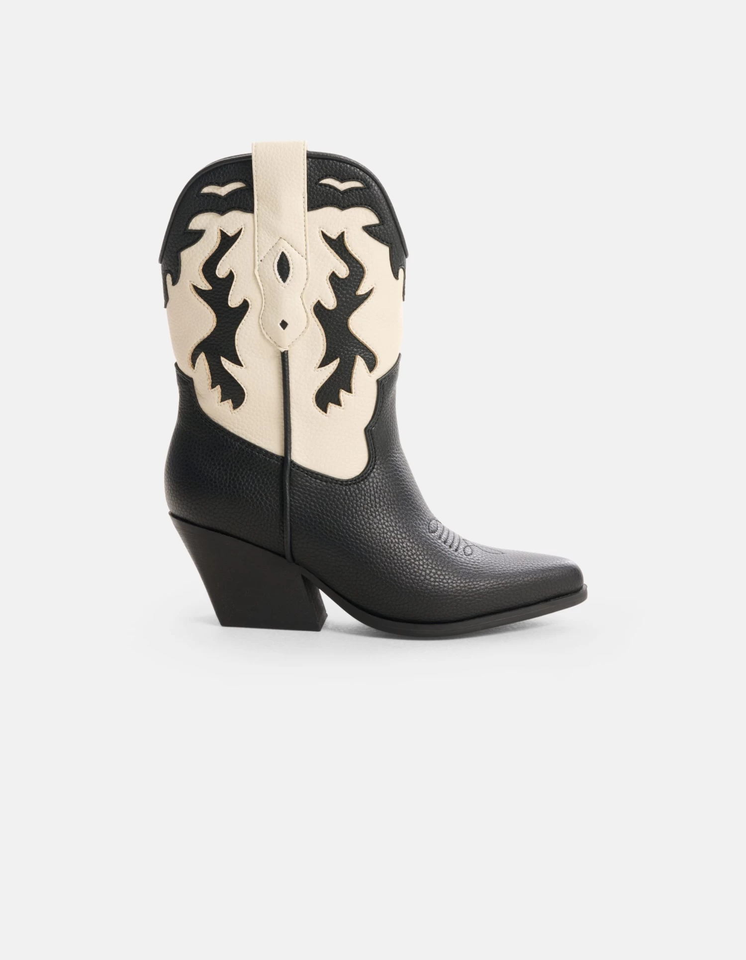 Een stoere cowboy laars kan niet ontbreken in jouw garderobe! Met de Middelhoge Cowboy Laarzen ga jij voor een WOW effect. Het item is gemaakt van vegan leer en heeft western accenten op de schacht. De laarzen worden gekenmerkt door de zwart met witte kleur, de spitse neus en een schuinaflopende westernhak. De schachthoogte is 23 cm hoog en heeft een hakhoogte van 7,5 cm.