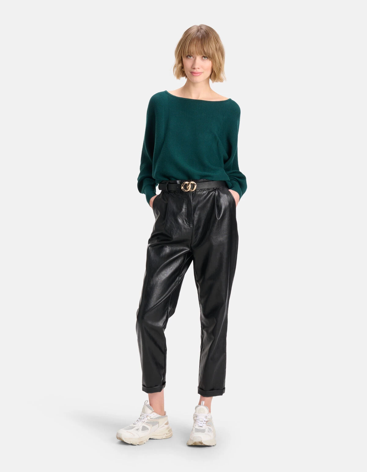 The greener the better! De Oversized Trui heeft lange vleermuismouwen, een wijde fit en een boothals. Het item wordt gekenmerkt door de donkergroene kleur met een geribde stof. Dit item is perfect voor jouw najaars garderobe, want door zijn eenvoud is het makkelijk te combineren. De trui is gemaakt van viscose, polyester en nylon, waardoor het fijn draagt, vormvast is en sterk van kwaliteit. Combineer het samen met een vegan leren broek en stoere sneakerks voor een complete look. Het model heeft een lengte van 179 cm en draagt maat XS/S. Het artikel heeft een totale lengte van 57 cm bij maat XS/S.