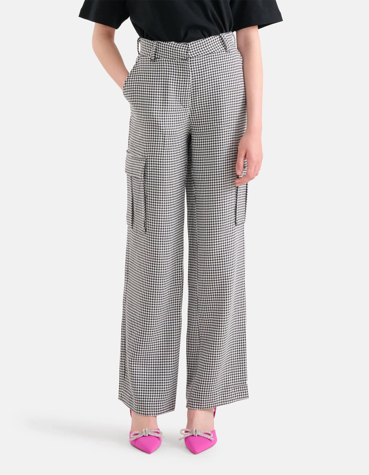 Pied-De-Poule Cargo Broek Zwart/Wit