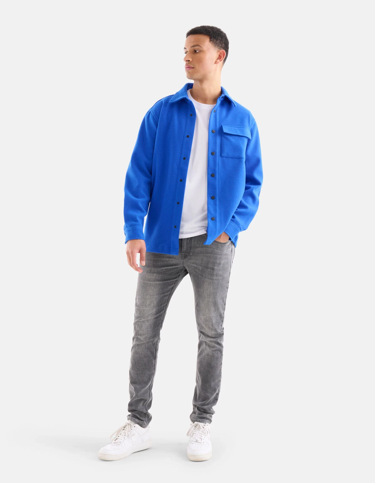 Casual meets stylish! Het Pocket Overshirt heeft lange mouwen, een blousekraag, een drukknoopsluiting en een regular fit. Het item wordt gekenmerkt door de fel blauwe kleur en één klepzakje op de voorzijde. Verder is het gemaakt van een zachte stof. Het is gemaakt van polyester, viscose en wol. Door deze stofsamenstelling voelt het artikel warm aan, vormvast en sterk van kwaliteit. Combineer het samen met een basis t-shirt en een grijze denim jeans voor een casual look! Het model heeft een lengte van 188 cm en draagt maat M. Het artikel heeft een totale lengte van 78,5 cm bij maat M.
