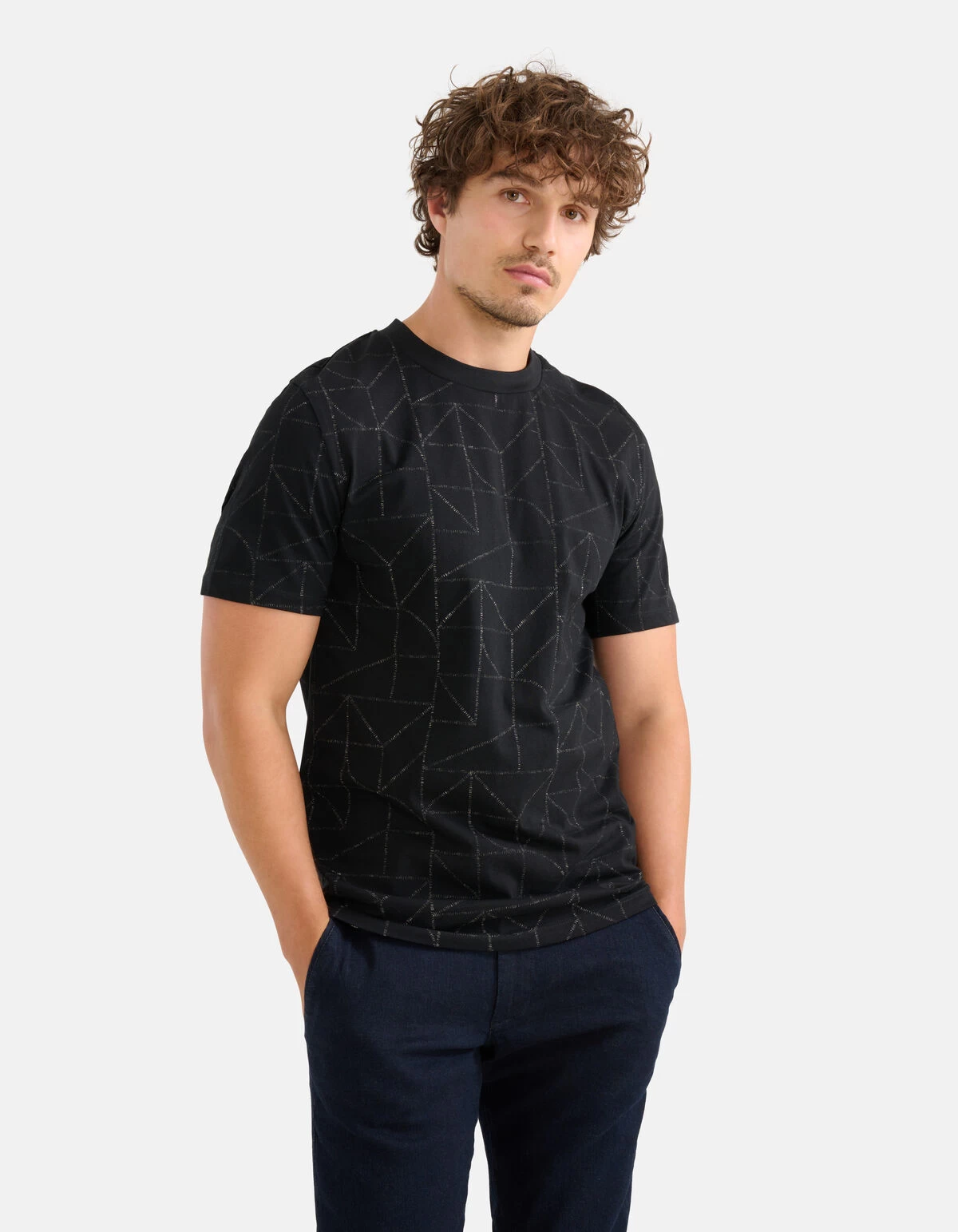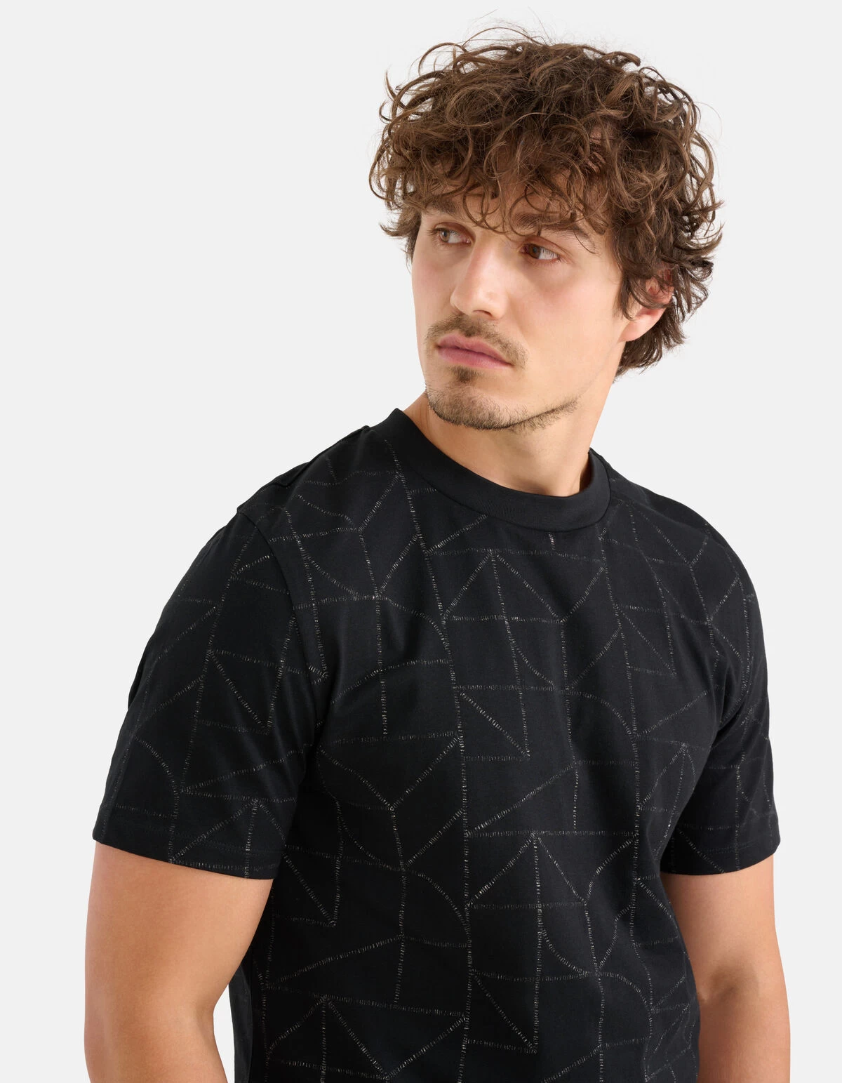 When fashion meets art! Het Printed T-shirt heeft een korte mouw, een hoge ronde hals en een regular fit. Het item wordt gekenmerkt door de zwarte kleur met een subtiele all-over print. Een leuk detail is de print, omdat de stiksel print aan de binnenkant zit, hierdoor krijgt de buitenkant een uniek effect. Het is gemaakt van 100% katoen, hierdoor is het sterk van kwaliteit en draagt het comfortabel. Maak de look compleet met een jeans en je bent ready to go! Het model heeft een lengte van 184 cm en draagt maat M. Het artikel heeft een totale lengte van 76 cm bij maat M.