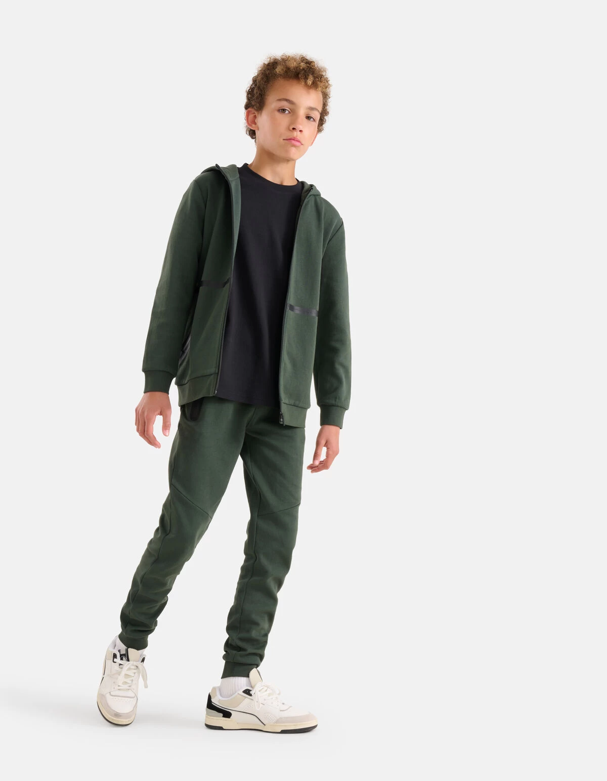 The greener the better! De Regular Fit Broek heeft een middelhoge taille, een regular fit, broekzakken en een elastieke band met een aansnoerkoord. Het item wordt gekenmerkt door de donkergroene kleur met zwarte details. Het aansnoerkoord en de rits bij de zakken hebben een zwarte kleur, hierdoor wordt de broek een stuk stoerder. Verder is het gemaakt van katoen en polyester. Door deze samenstelling is de broek sterk van kwaliteit, vormvast en comfortabel. Maak de look compleet met een basis t-shirt en het bijpassende vest en je bent ready to go!