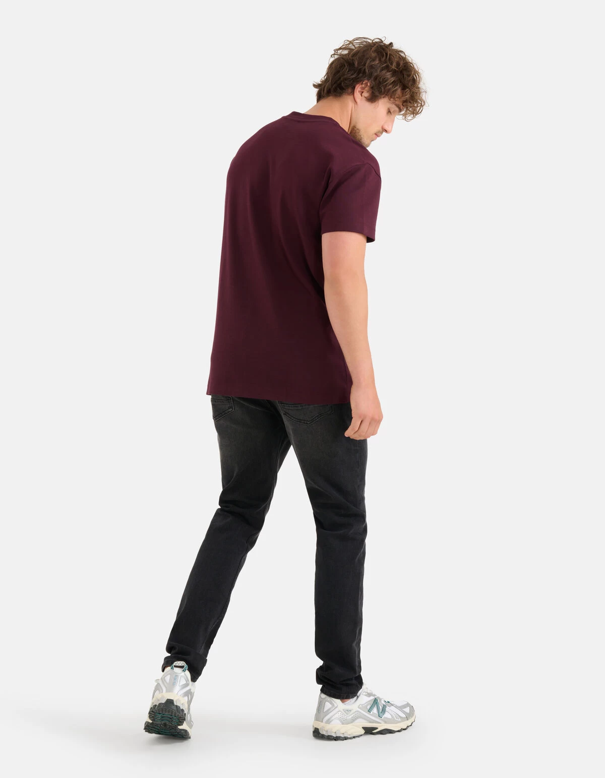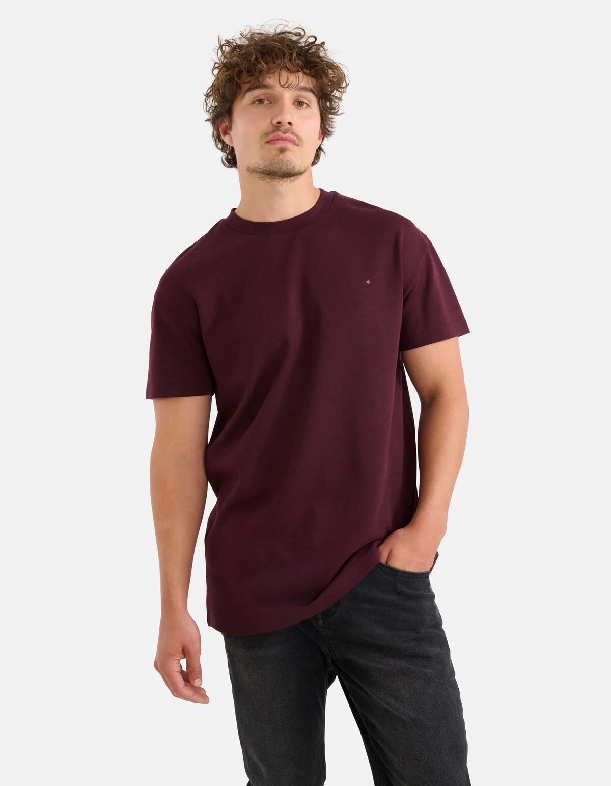 Perfect voor elke gelegenheid! Het Relaxed Fit T-shirt heeft korte mouwen, een ronde hals, een low stretch stof en een relaxed fit. Het item wordt gekenmerkt door de trendy bordeaux kleur. Verder heeft het t-shirt een wijde fit, waardoor het item net wat stoerder valt. Het is gemaakt van katoen en elastaan, waardoor er genoeg stretch in zit en het comfortabel draagt. Combineer het item samen met een jeans en sneakers voor een casual look. Het model heeft een lengte van 184 cm en draagt maat M. Het artikel heeft een totale lengte van 72 cm bij maat M.