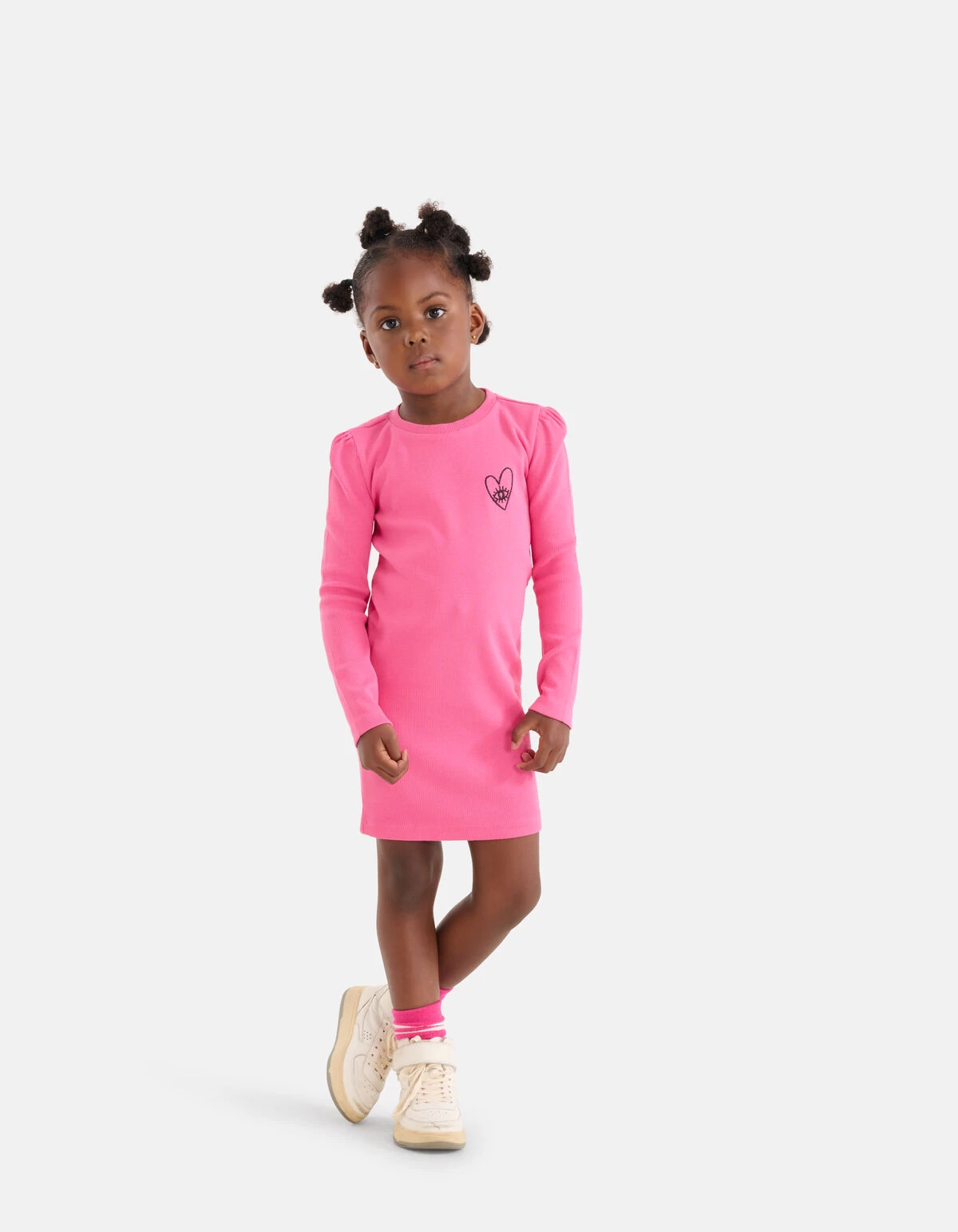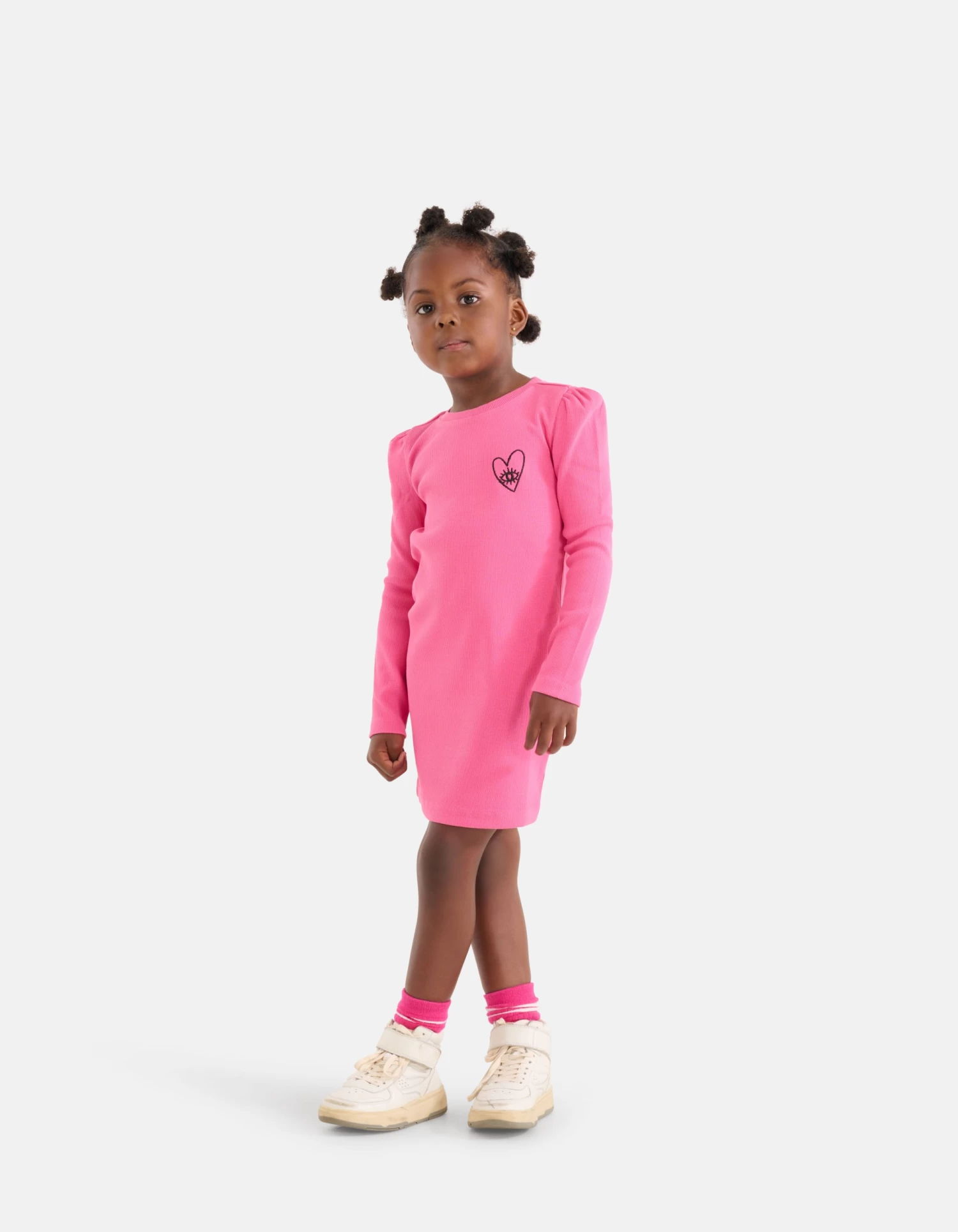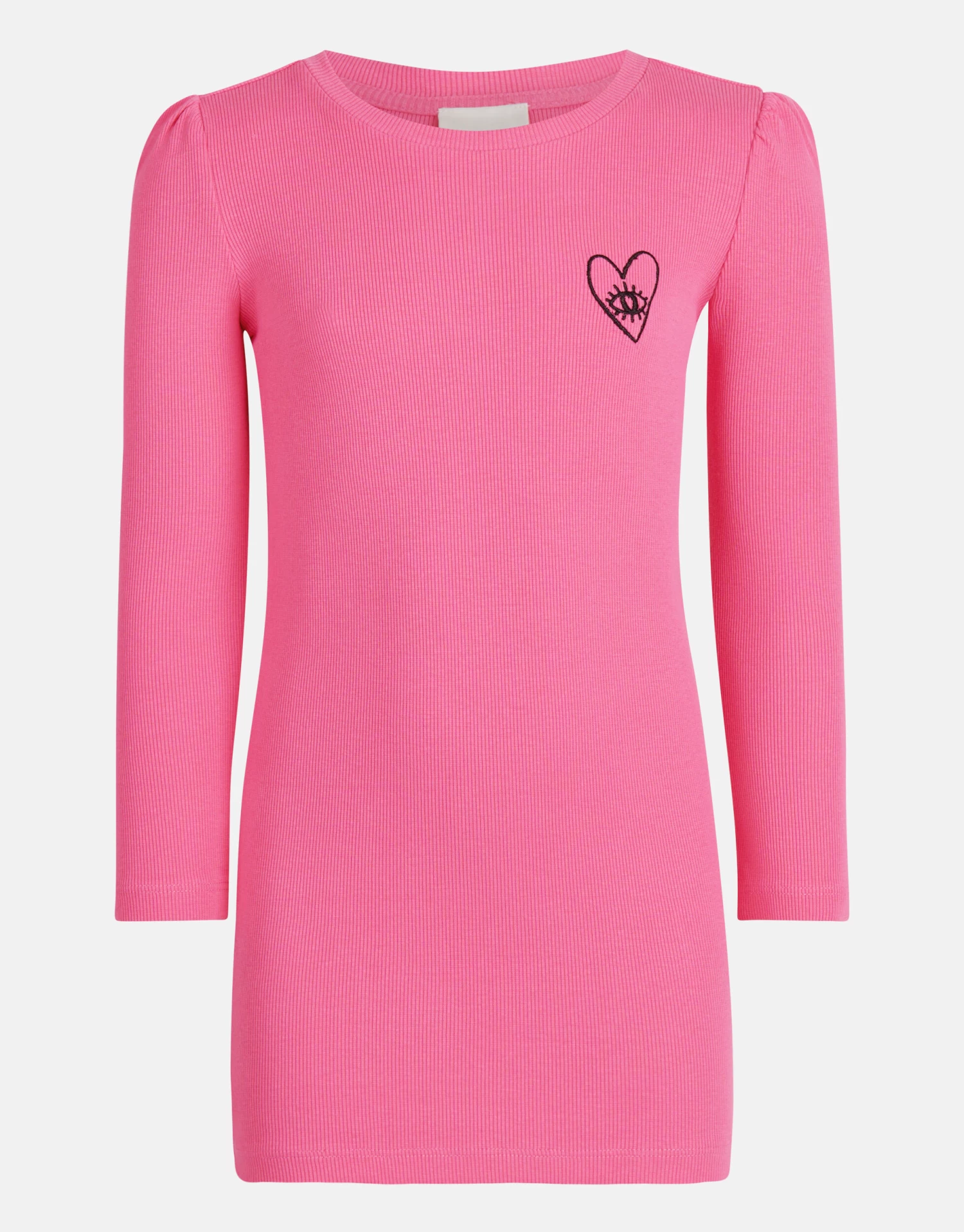 A touch of pink! De Rib Jurk heeft lange pofmouwen, een hoge ronde hals, een stretch stof en een aansluitende fit. Het item wordt gekenmerkt door de fijne rib stof en de knal roze kleur. Een leuk detail is het zwarte geborduurde hartje op de voorzijde. Verder is de jurk gemaakt van katoen en elastaan. Door deze samenstelling is het sterk van kwaliteit, comfortabel en subtiel rekbaar. Draag het samen met een paar stoere laarzen voor een rocky look!