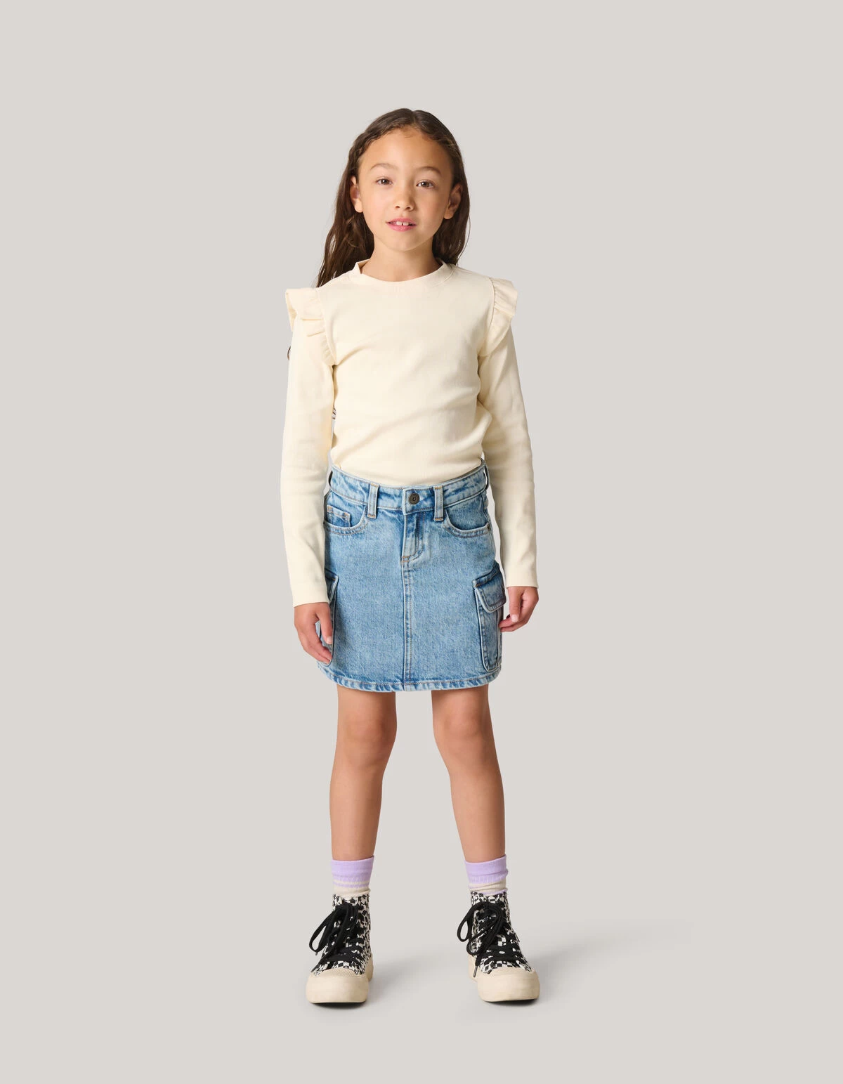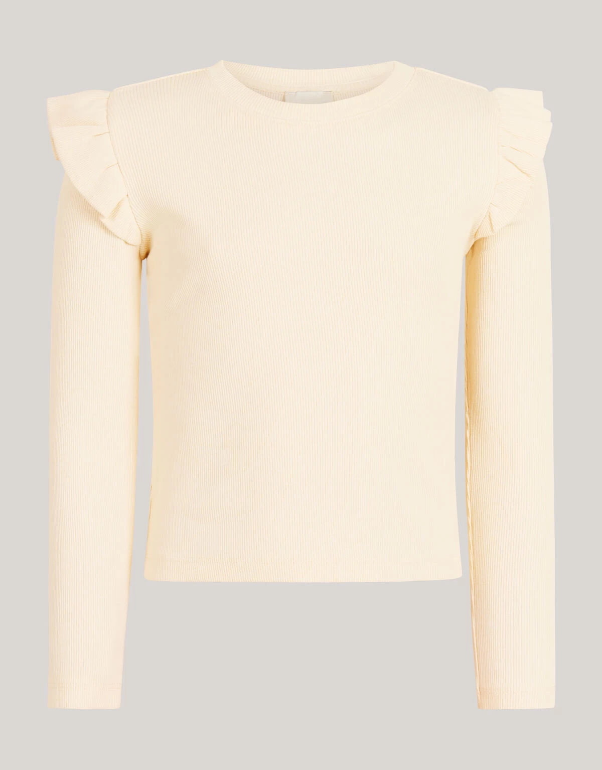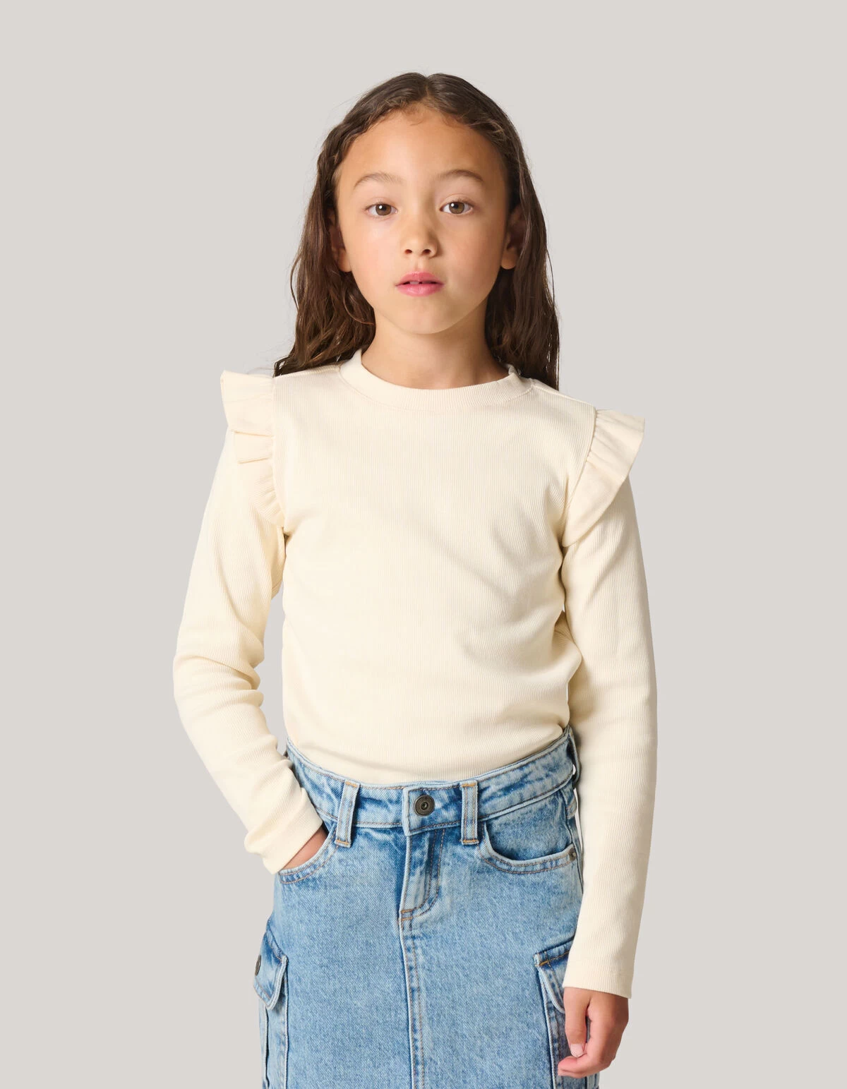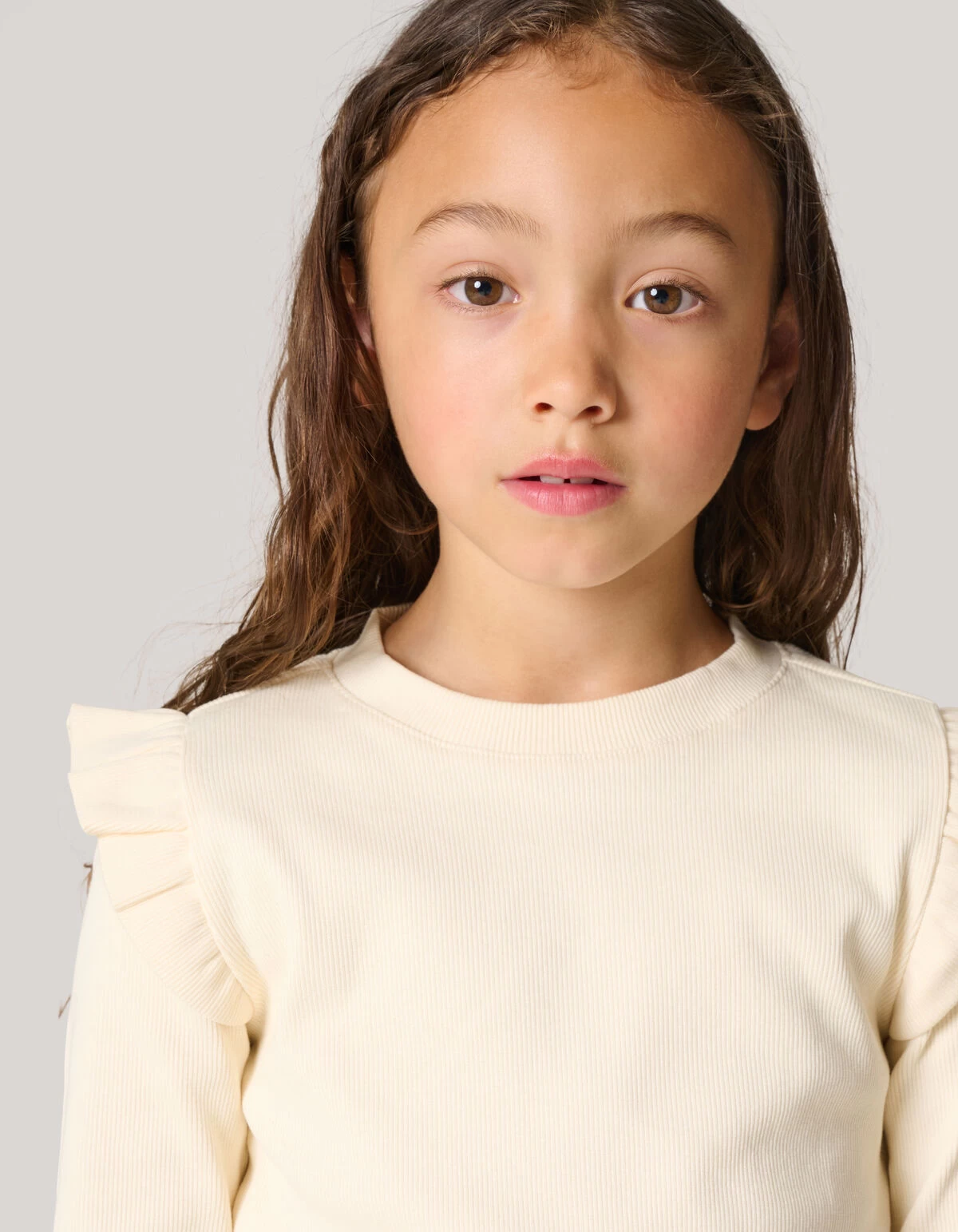 Ruffle Rib Longesleeve Top Gebroken Wit