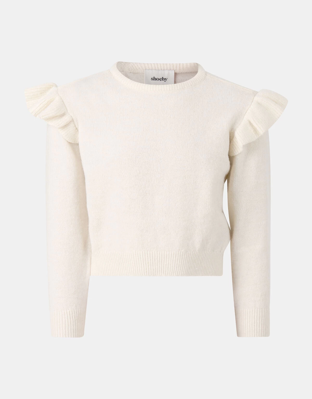 Classy & comfy! De Shoulder Ruffle Pullover heeft lange mouwen, een ronde hals, een regular fit en een fijn breisel. Het item wordt gekenmerkt door een offwhite kleur met een ruffle bij de schouders. Combineer de trui samen met een gekleurde broek voor een stijlvolle look!