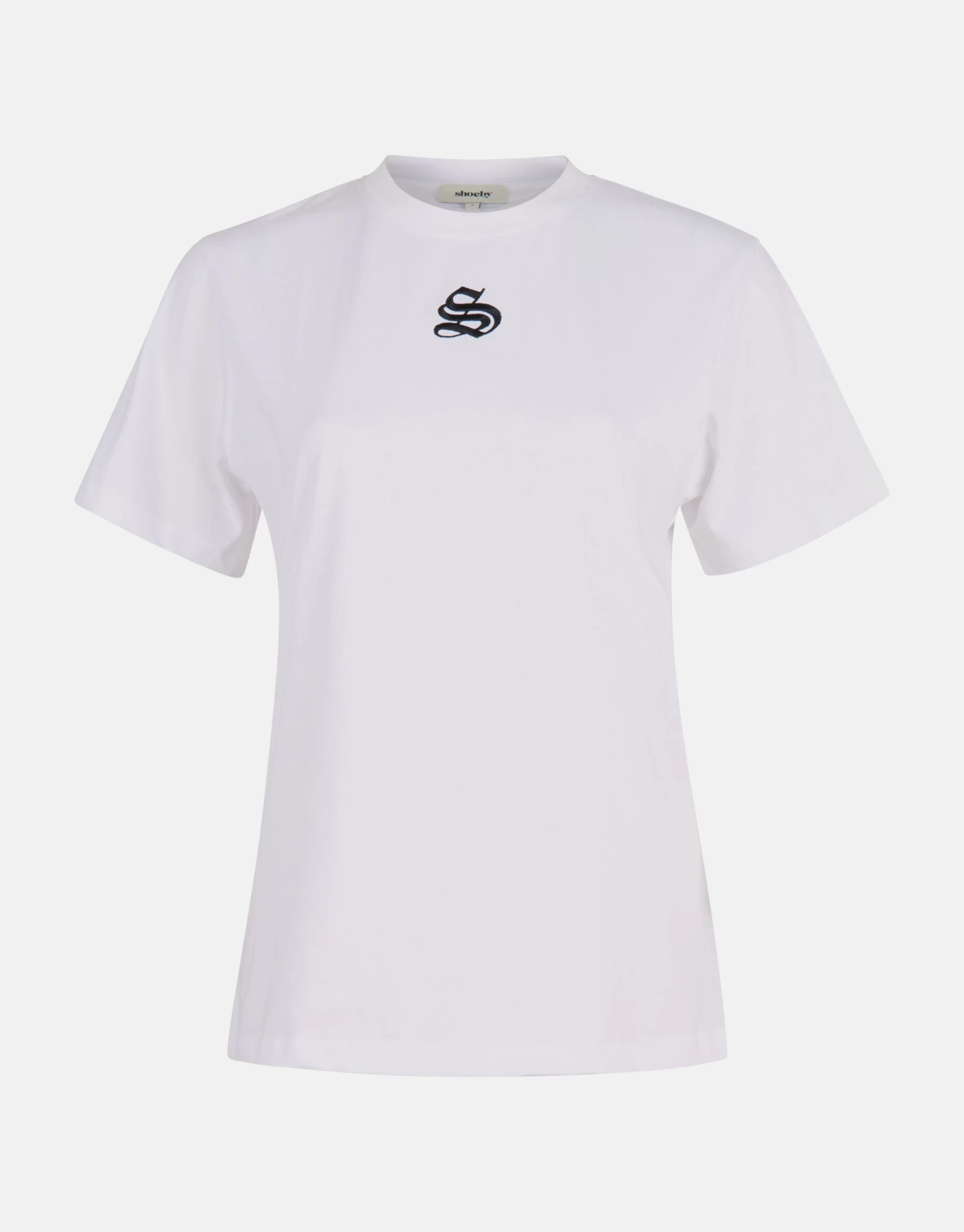 Wardrobe essential! Het Signature Artwork T-shirt heeft korte mouwen, een hoge ronde hals en een regular fit. Het item wordt gekenmerkt door de witte kleur met een geborduurd artwork op de voorzijde. Het artwork heeft de Shoeby signature logo, waardoor het t-shirt een luxueuze uitstraling heeft. Het t-shirt is gemaakt van katoen en polyester, hierdoor is het vormvast, sterk van kwaliteit en comfortabel. Draag het samen met een beige pantalon, statement oorbellen en een chunky sneaker en je bent ready to go! Het model heeft een lengte van 178 cm en draagt maat S. Het artikel heeft een totale lengte van 62 cm bij maat S.