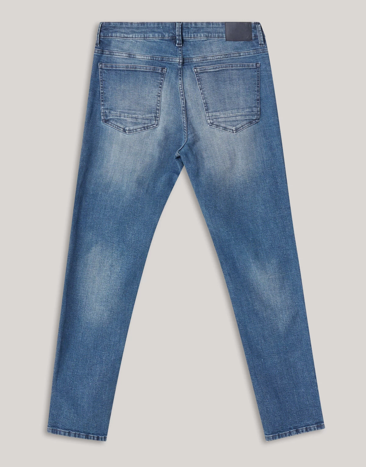 Classic denim, timeless style! De Slim Jeans heeft een middelhoge taille, een 5-pocket model, een hoge stretch kwaliteit wat zorgt voor een hoog draagcomfort, lengtemaat 32 en een knoop-en ritssluiting. Verder heeft de jeans een slim fit, waardoor het slank valt vanaf de bovenbeen tot aan de enkels. Het item wordt gekenmerkt door de blauw/grijze blauwe wassing met licht gebleekte wash effect op de voorzijde. Een leuk detail zijn de donkerblauwe stiksels, deze geven de perfecte finishing touch! Maak de look compleet met een fijne knit en een overshirt voor een gelaagde look. Het model heeft een lengte van 184 cm en draagt maat 31. Het artikel heeft een binnenbeenlengte van 81 cm bij lengtemaat 32.