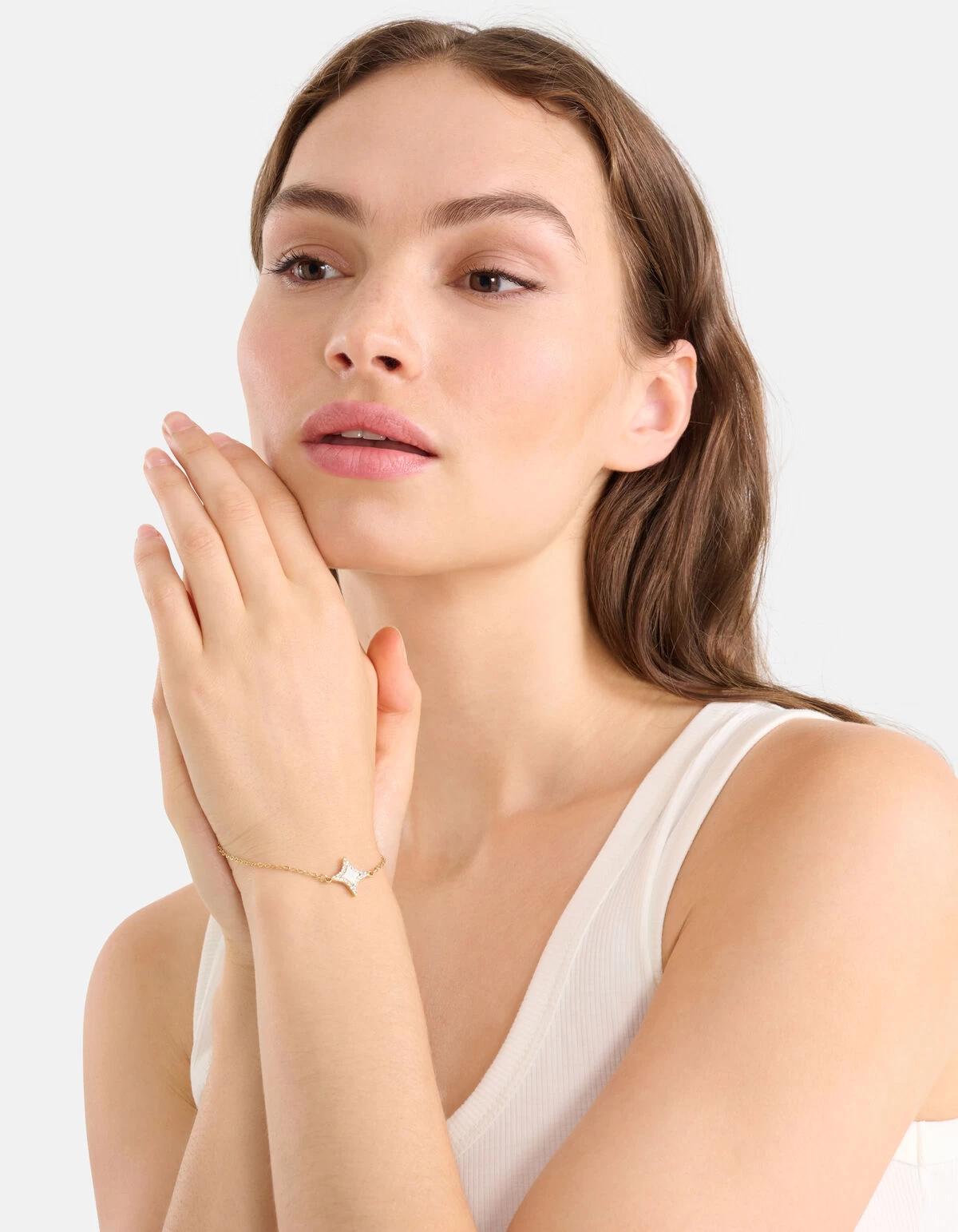 Let your outfit shine with Shoeby’s stunning sparkles! De Sparkle Armband is het perfecte statement artikel dat bij elke outfit past. De armband wordt gekenmerkt door de gouden kleur met een sparkle bedel in het midden. De bedel heeft de vorm van een Shoeby sparkle logo en heeft zilveren strass steentjes. Designed to make you shine! Verder heeft het een haaksluiting, waardoor het makkelijk is om de armband te sluiten. Combineer het samen met de bijpassende sparkle ketting voor de complete set!