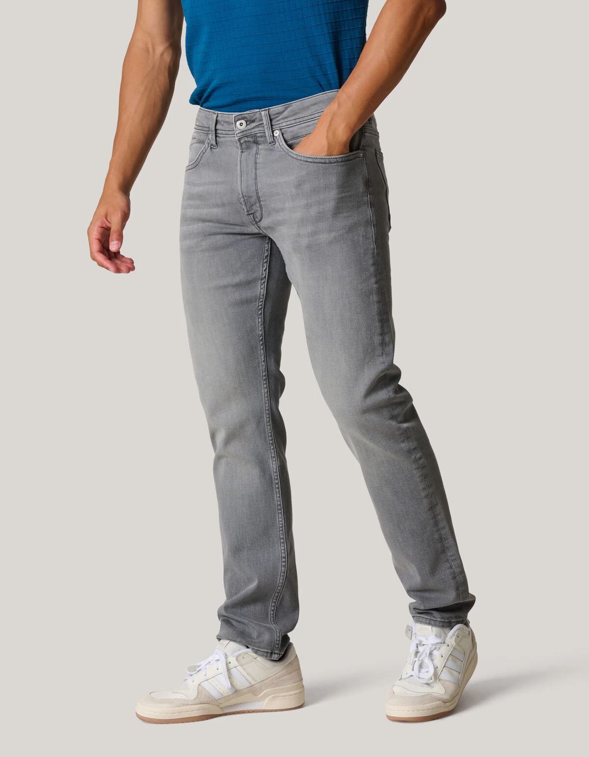 Jeans game strong! De Straight Jeans Heeft een middelhoge taille, een 5-pocket model, een knoop-en ritssluiting, een hoge stretch stof, een straight fit met een rechte en losvallende fit. Het item wordt gekenmerkt door de grijze wassing met donkergrijze stiksels voor de perfect finishing touch! Het is gemaakt van katoen en elastaan. Door deze samenstelling is het sterk van kwaliteit, subtiel rekbaar en comfortabel. Combineer het samen met een t-shirt of een geruit overhemd voor een stijlvolle najaarslook! Het model heeft een lengte van 185 cm en draagt maat 32. Het item heeft een binnenbeenlengte van 81 cm bij lengtemaat 32.