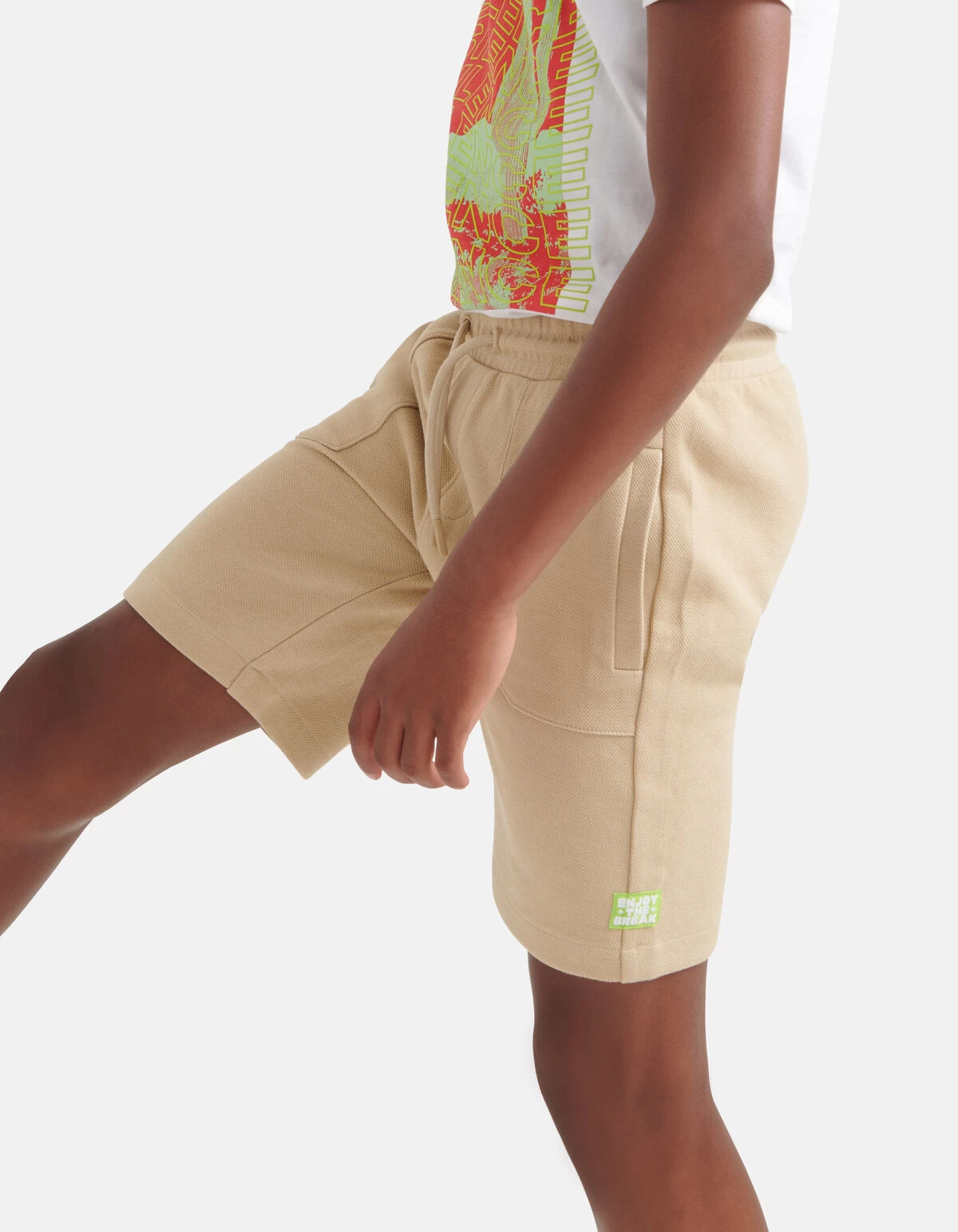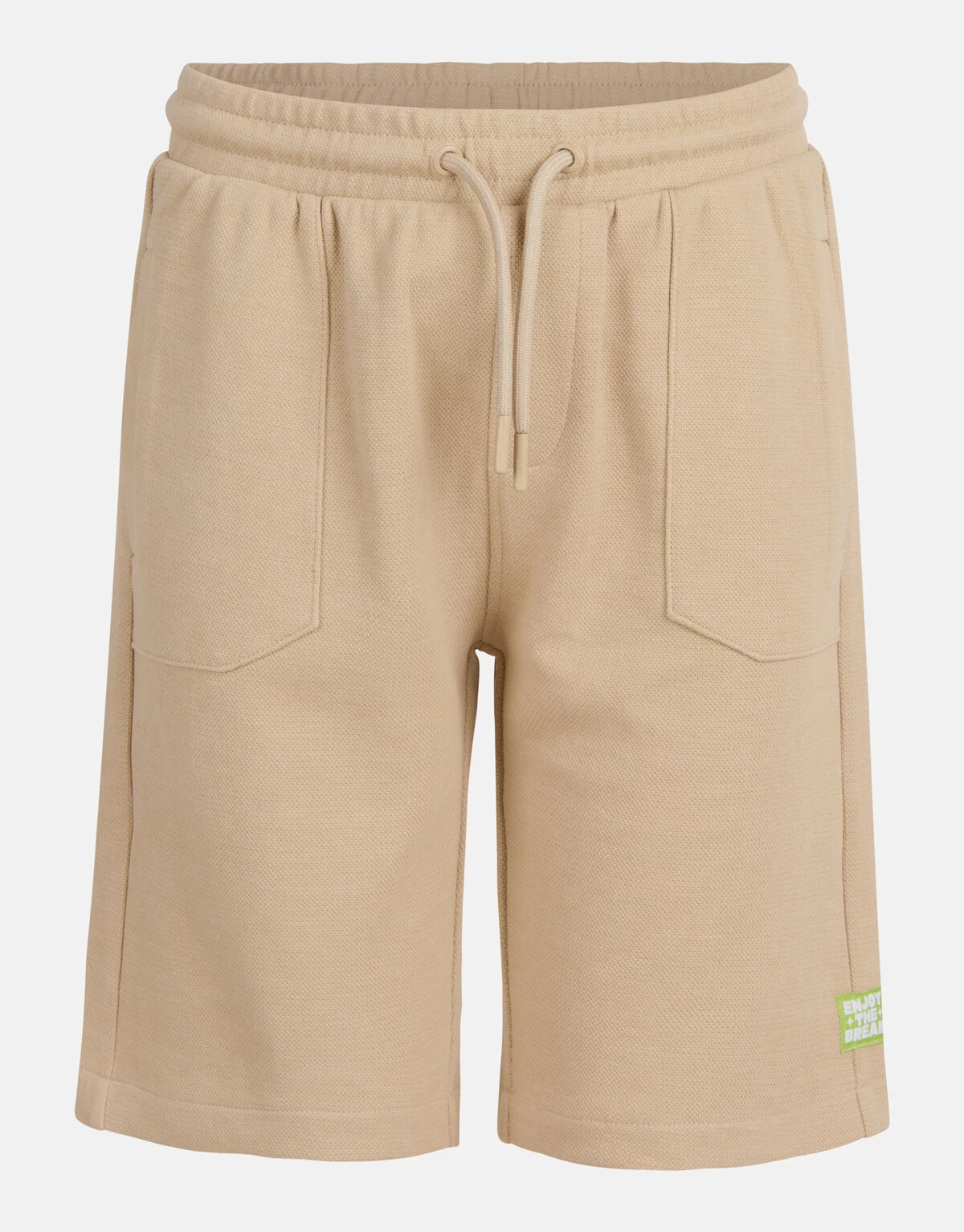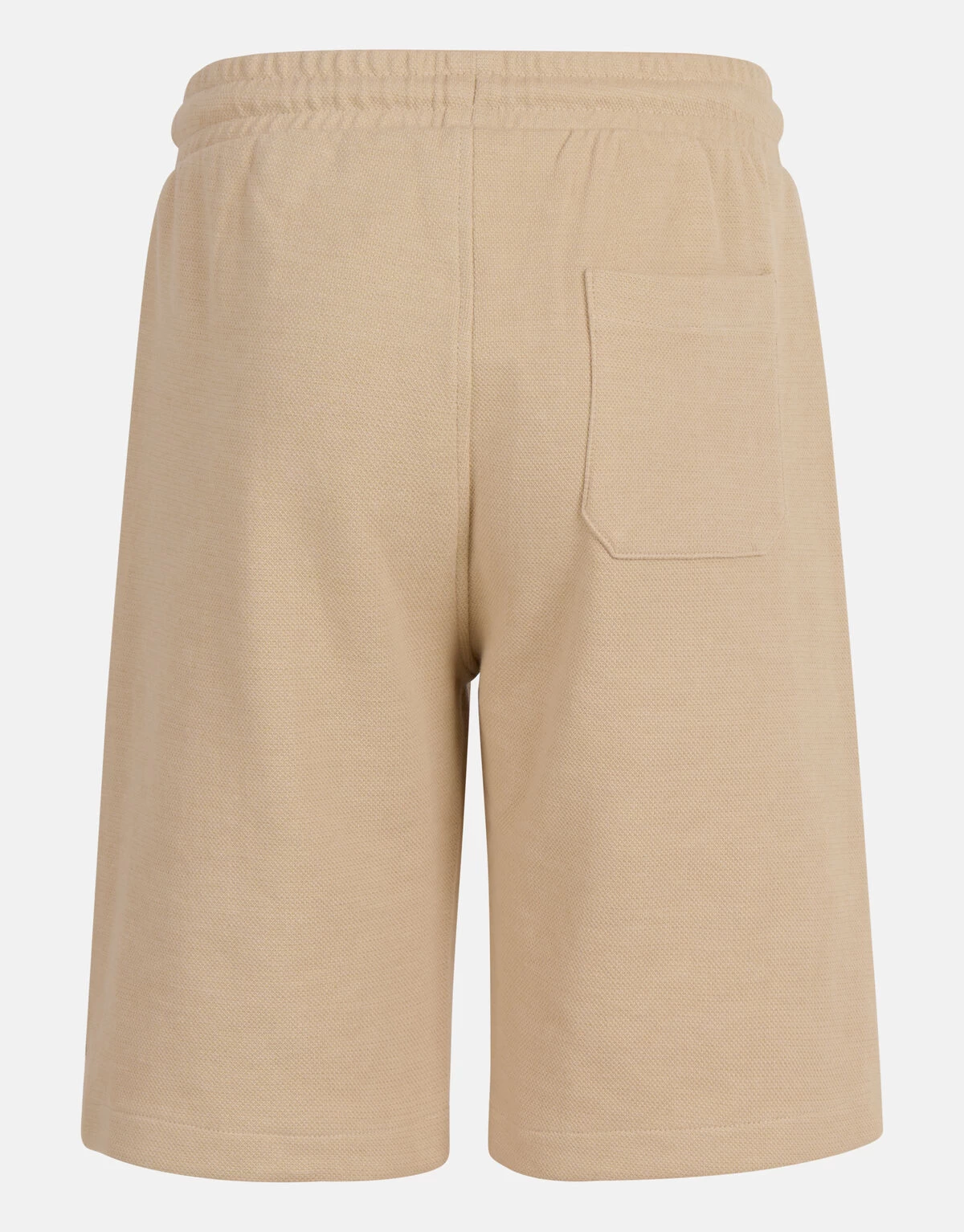 Musthave! De Structuur Short heeft een middelhoge taille, een korte broekspijp, een regular fit, steekzakken en een elastieke tailleband met aansnoerkoordjes. Het item wordt gekenmerkt door de beige kleur met een gebreide pique kwaliteit, hierdoor onstaat er een structuur in de stof. Verder heeft het een woven label aan de onderzijde voor een speels effect. Het is gemaakt van katoen en polyester, waardoor het vormvast, sterk van kwaliteit is en comfortabel draagt. Combineer het samen met een statement t-shirt en sneakers voor een sportieve look!