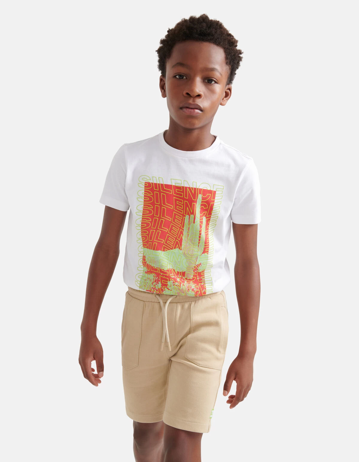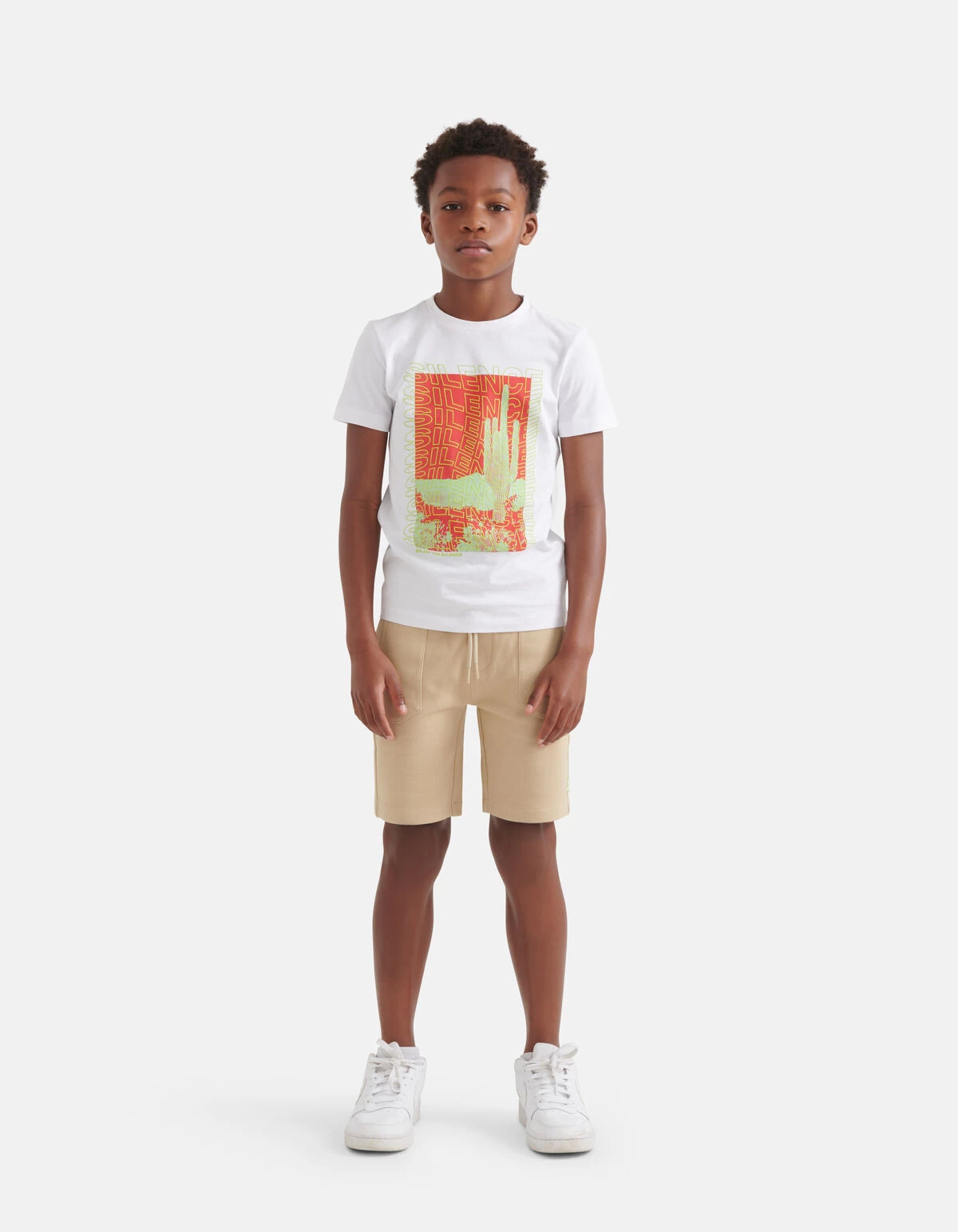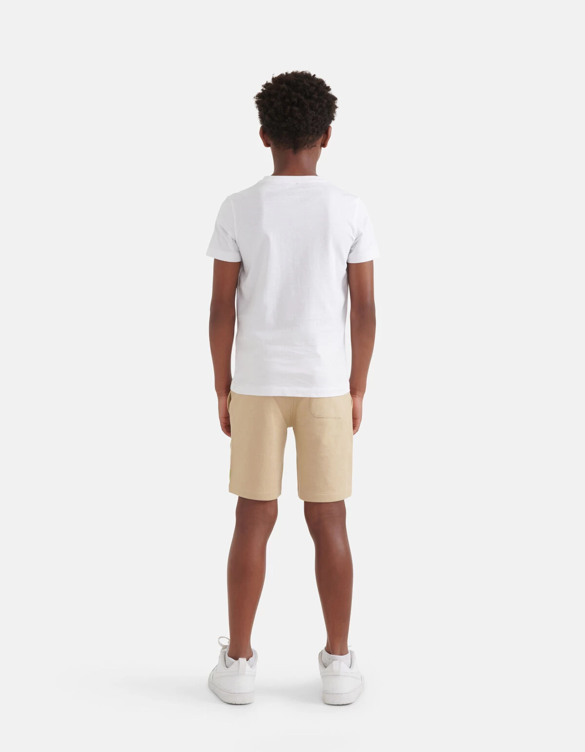 Musthave! De Structuur Short heeft een middelhoge taille, een korte broekspijp, een regular fit, steekzakken en een elastieke tailleband met aansnoerkoordjes. Het item wordt gekenmerkt door de beige kleur met een gebreide pique kwaliteit, hierdoor onstaat er een structuur in de stof. Verder heeft het een woven label aan de onderzijde voor een speels effect. Het is gemaakt van katoen en polyester, waardoor het vormvast, sterk van kwaliteit is en comfortabel draagt. Combineer het samen met een statement t-shirt en sneakers voor een sportieve look!