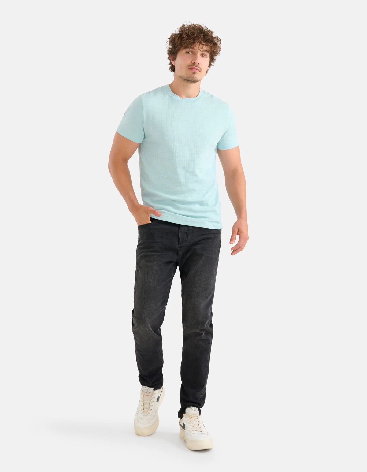 Musthave! Het Structuur T-shirt heeft korte mouwen, een hoge ronde hals, een low stretch stof en een regular fit. Het item wordt gekenmerkt door de lichtgroene kleur met een all-over block structuur in de stof verwerkt. Het is gemaakt van polyester, viscose en elastaan. Door deze samenstelling is het sterk van kwaliteit, vormvast, kleurvast en subtiel rekbaar. Maak de look compleet met een jeans en je bent good to go! Het model heeft een lengte van 184 cm en draagt maat M. Het artikel heeft een totale lengte van 72 cm bij maat M.
