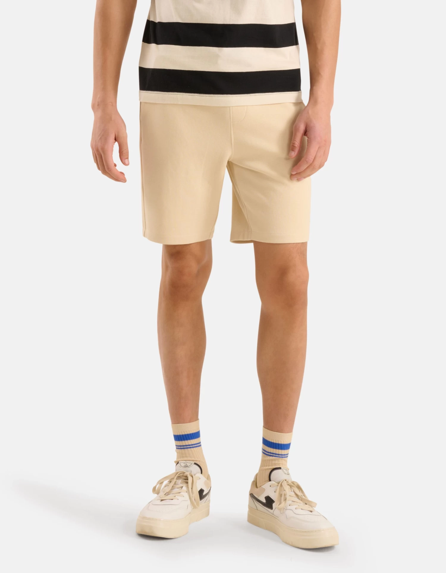 Wardrobe essential! De Sweat Short heeft een middelhoge taille, een korte broekspijp, een regular fit, steekzakken, een elastieke band met een aansnoerkoord en één paspelzak op de achterzijde. Het item wordt gekenmerkt door de beige kleur en de comfortabele stretch stof. Een leuk detail is het Shoeby sparkle logo op de onderzijde van de broekspijp. De short is gemaakt van katoen en polyester. Door deze samenstelling is het sterk van kwaliteit, vormvast en draagt het comfortabel. Maak de look compleet met een gestreept t-shirt en stoere sneakers voor een good to go look! Het model heeft een lengte van 189 cm en draagt maat M. Het artikel heeft een binnenbeenlengte van 22 cm bij maat M.