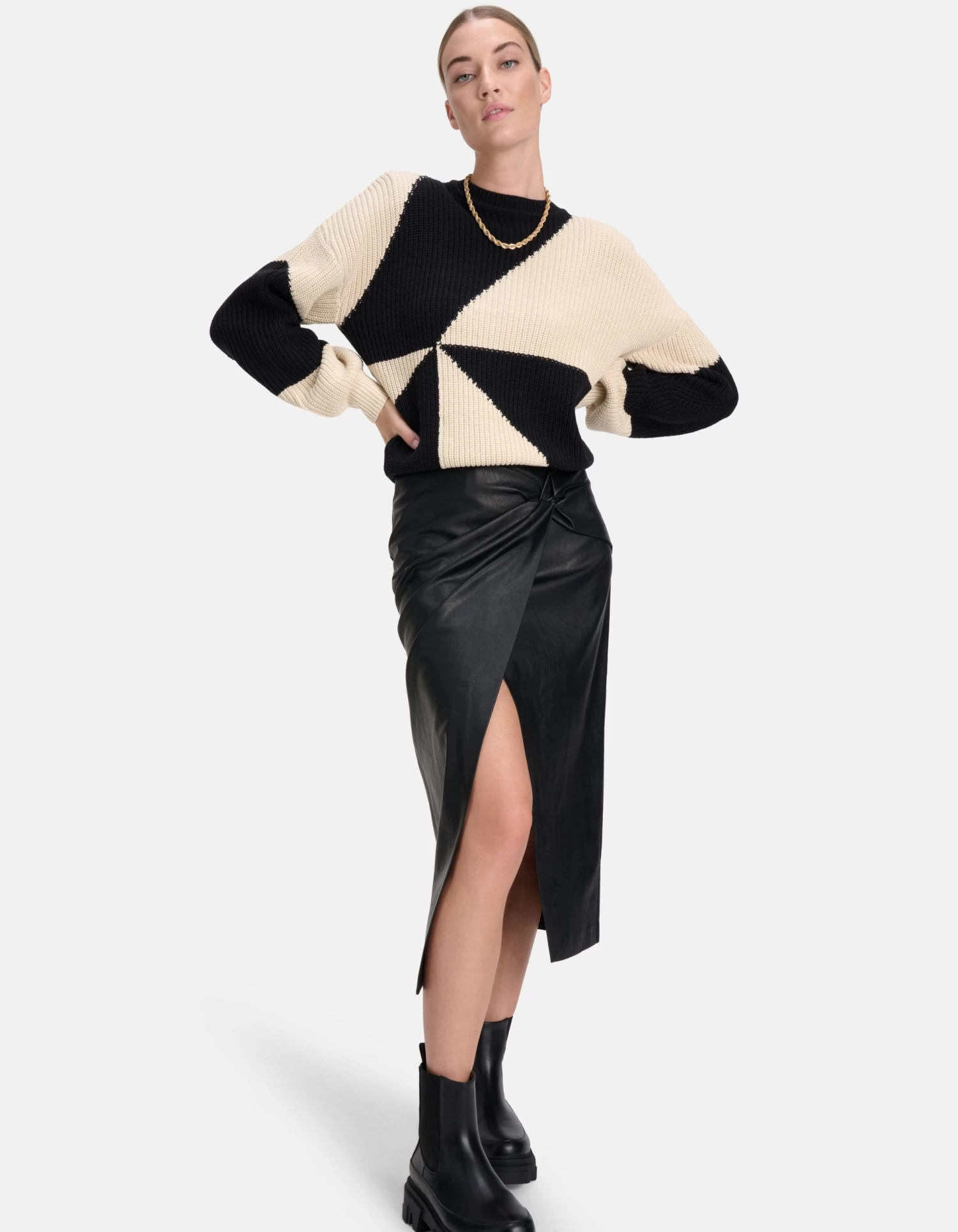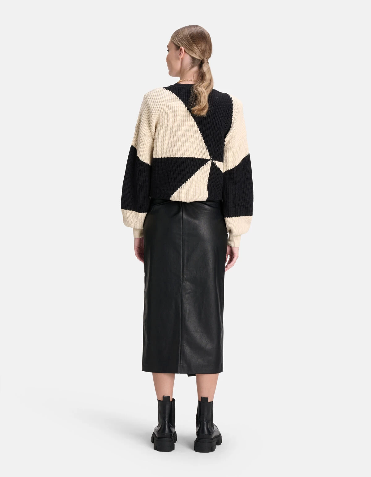 Zoek jij de perfecte balans tussen sophisticated en stoer? Deze kleurrijke najaarscollectie van Shoeby is toegankelijk voor iedereen en geschikt voor elk moment. Bereid je dus maar vast voor op complimenten. De Vegan Leren Midi Rok heeft een hoge taille, een ritssluiting aan de zijkant en een aansluitende fit. Het item wordt gekenmerkt door de zwarte kleur en een knoopdetail aan de voorzijde. Daarnaast heeft de rok ook een eye-catching split aan de voorzijde. Het item is eindeloos te combineren en te dragen voor elke gelegenheid. Combineer het samen met een grof gebreide colorblock trui met een paar stoere laarzen en je bent ready to go! Het model heeft een lengte van 177 cm en draagt maat S. Het artikel heeft een totale lengte van 84,5 cm bij maat S.