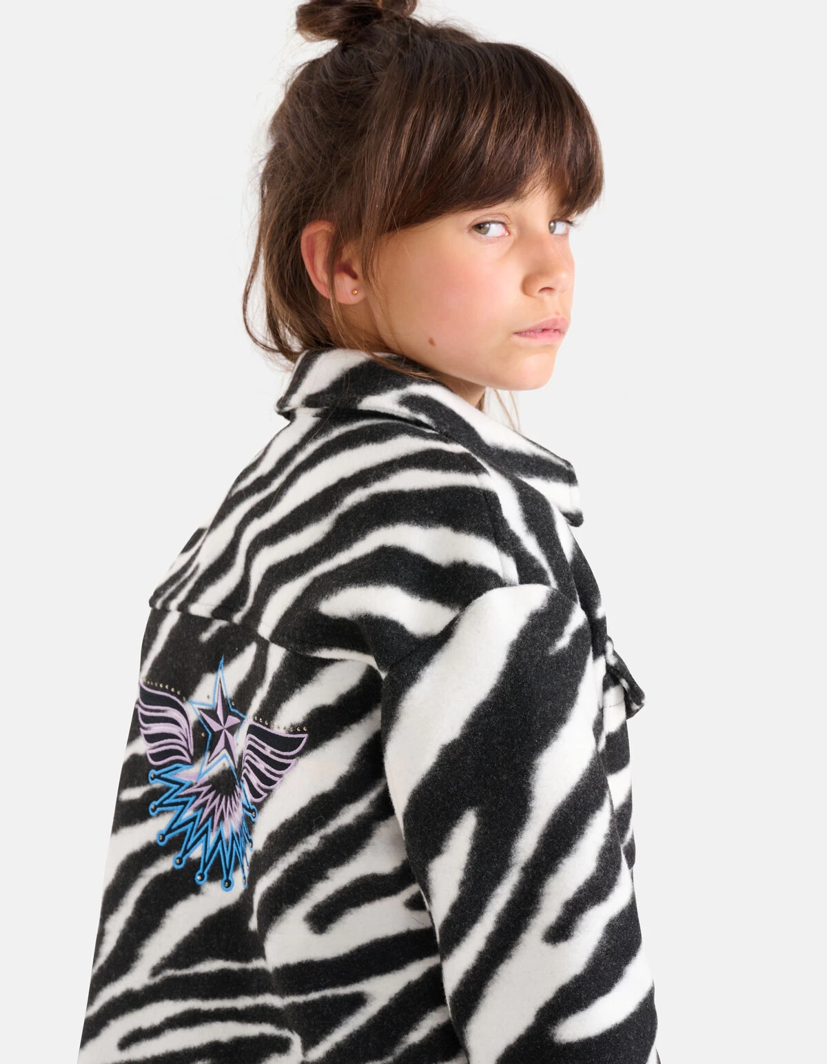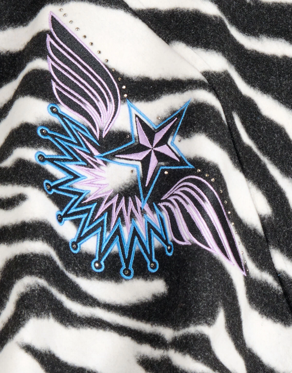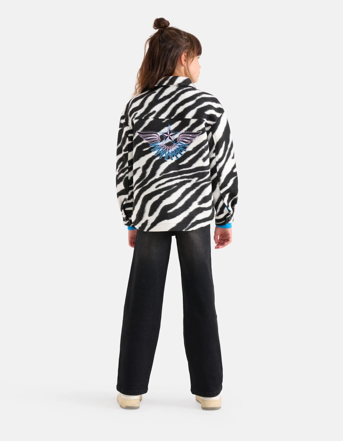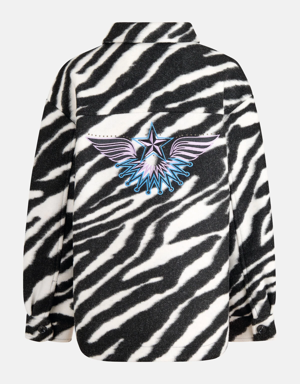 Unleash your wild side! Het Western Embroidery Jack heeft lange mouwen, een kraag, een knoopsluiting, een non-stretch stof, twee klepzakken op de voorzijde en een oversized fit. Het item wordt gekenmerkt door de witte kleur met een all-over trendy zebra print in de kleur zwart. This iconic pattern brings a touch of wild sophistication to elevate your outfit game! Verder heeft de achterkant een western artwork met subtiel zilveren steentjes erin verwerkt. Het is gemaakt van 100% polyester, hierdoor is het sterk van kwaliteit en vormvast. Draag het samen met een studs denim jeans en een blauwe top voor een rocky look!